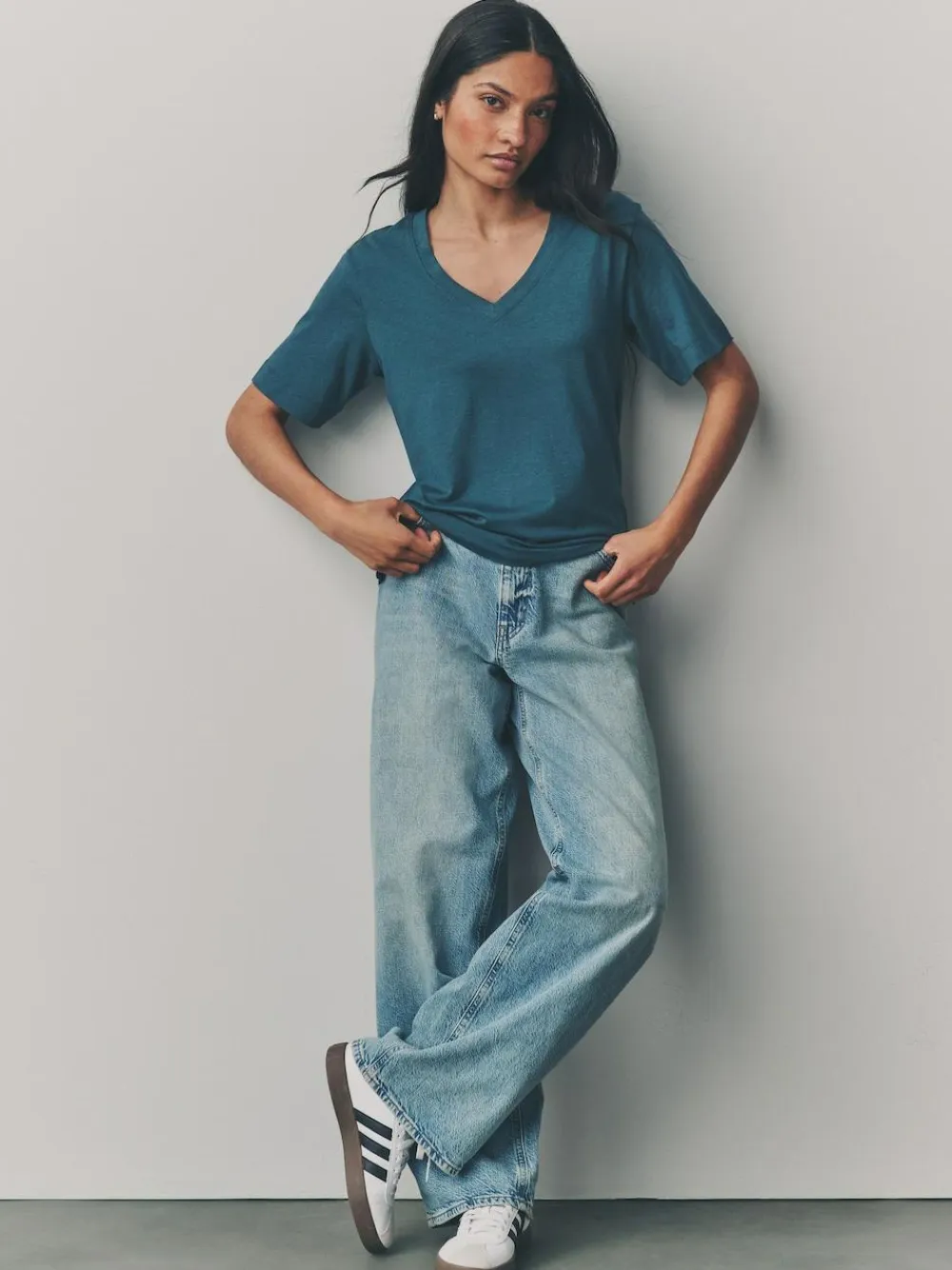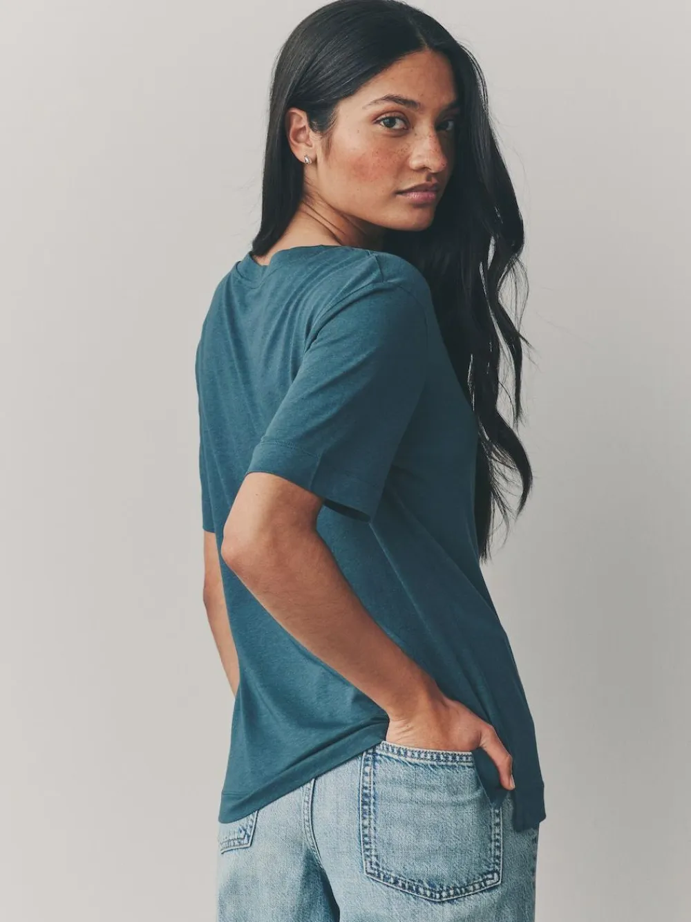 Refresh your everyday staples with this red, teal and brown 3-pack of t-shirts, made from a super soft cotton-blend fabric with a trimmed V-shaped collar, a slouchy shape and short sleeves for a premium take on a classic essential. 3-pack Cotton-blend V-shaped neck Short sleeves Drape shape Machine washable. 3 x T-shirt 50% Cotton, 50% TENCEL™ modal.