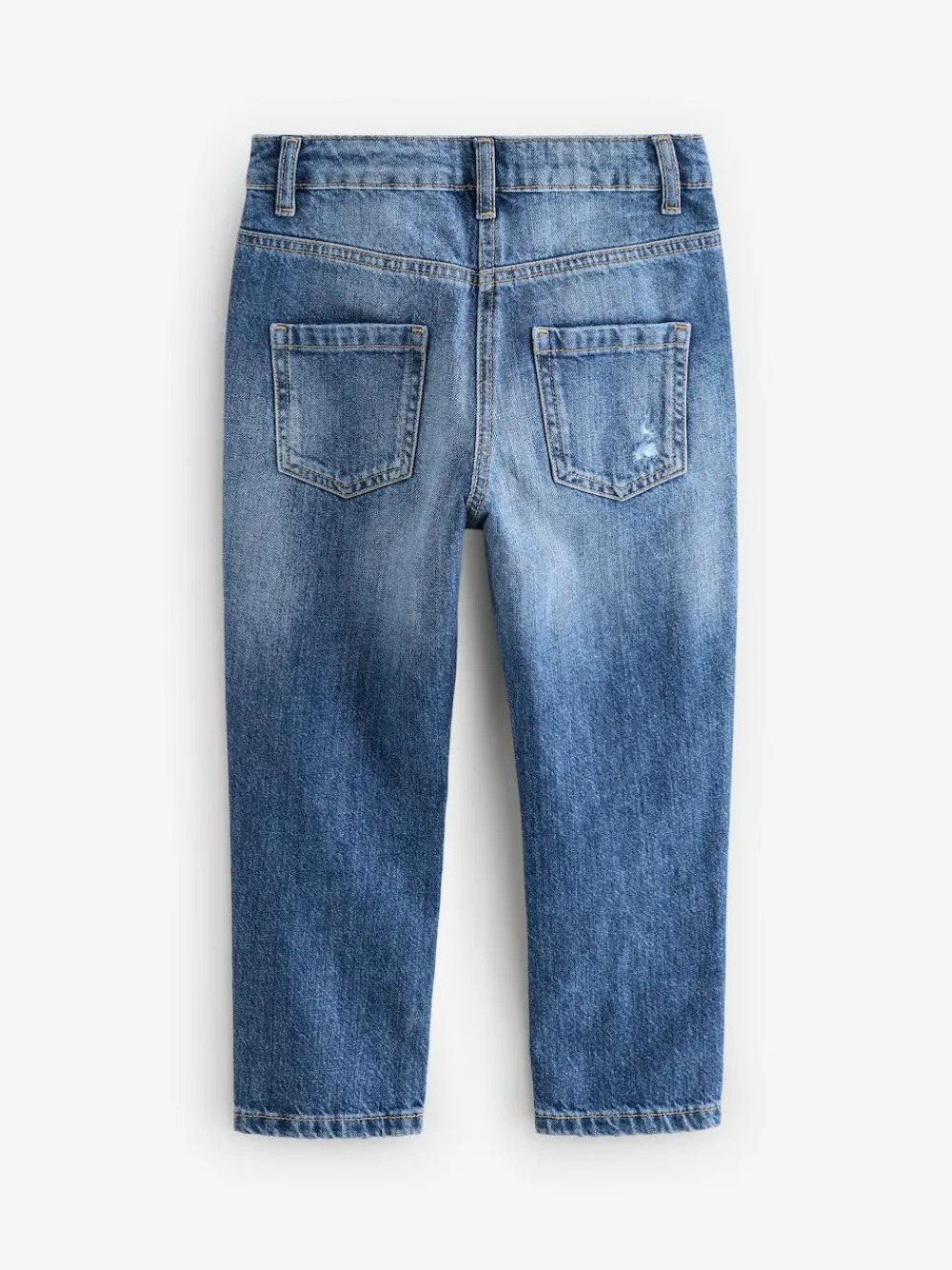 These stylish mid blue jeans are a go-to essential for easy styling, featuring a comfortable mom fit with a straight leg, crafted from pure cotton denim. The jeans have a vintage-look with a 5-pocket design and on-trend distressing to the legs. Mom fit Straight leg 100% cotton Distressed finish 5-pocket design Machine washable. 100% Cotton.