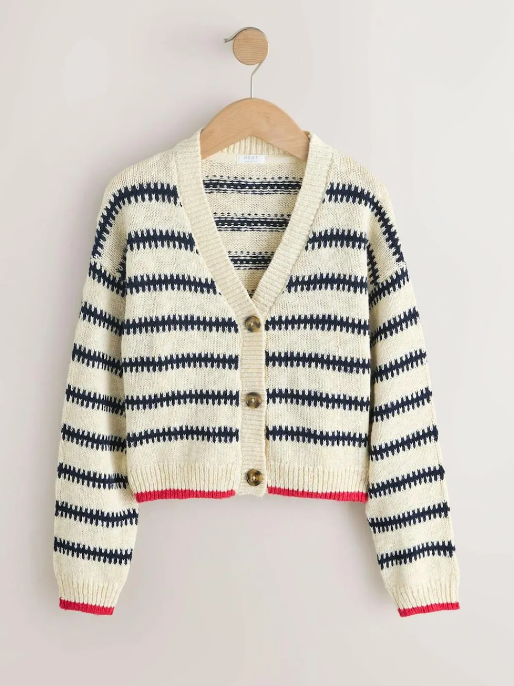 Next Mono Stripe V-Neck Stitch Cardigan (3-16yrs)^ Knitwear & Sweaters|Knitwear