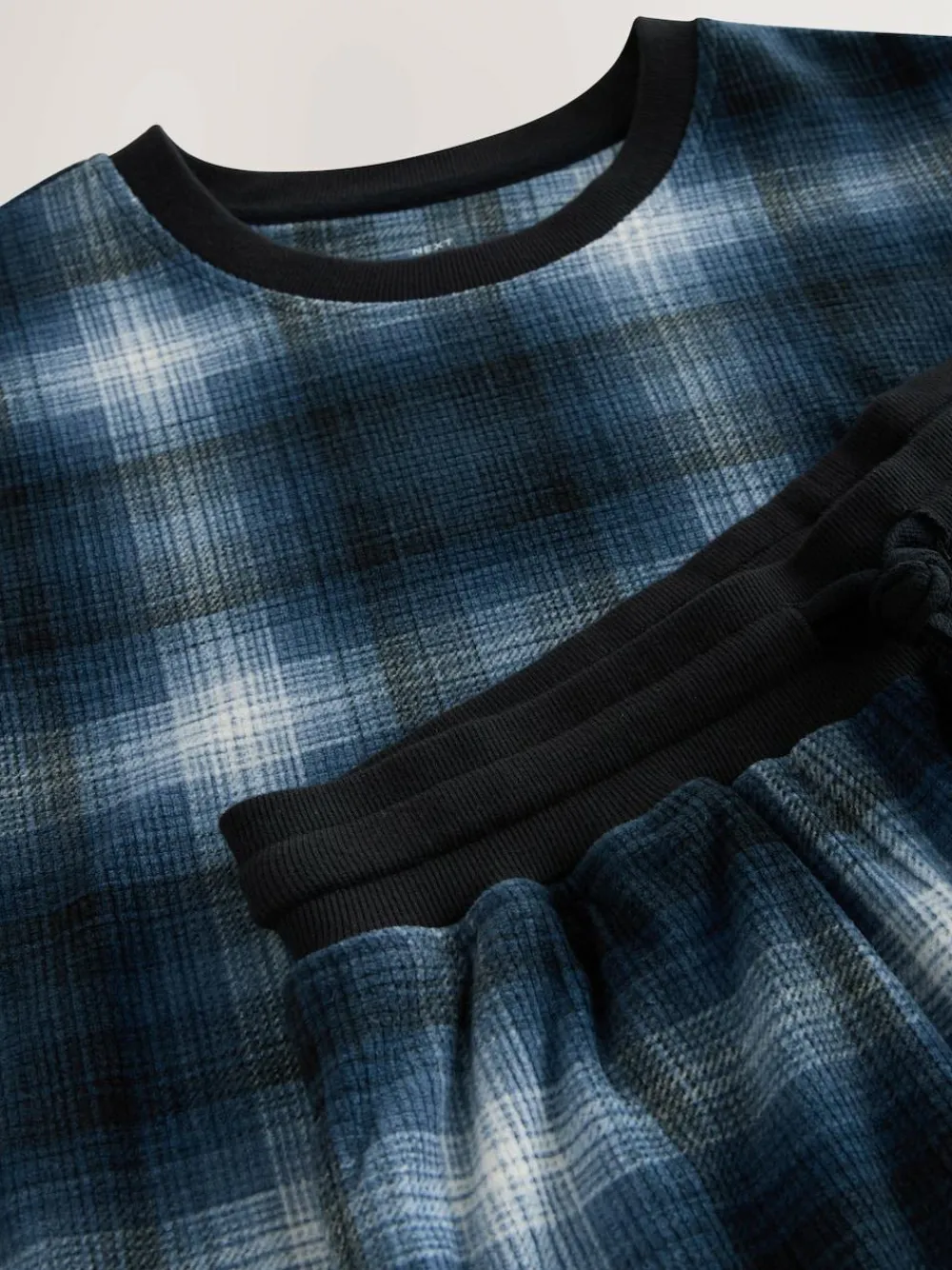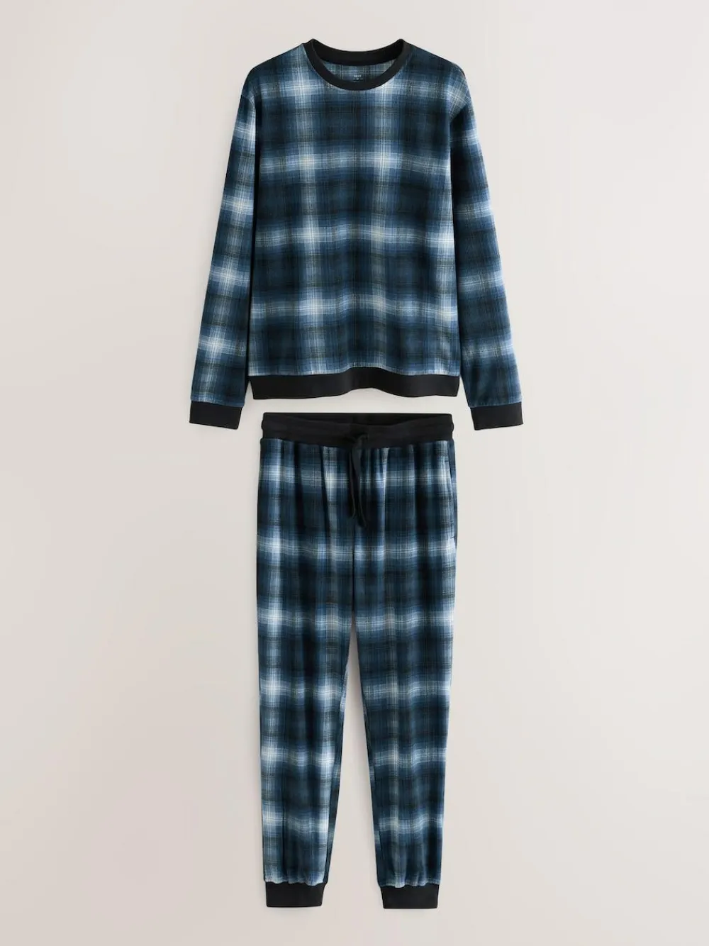 Next Motionflex Cosy Long Sleeve Cuffed Pyjamas Set Navy Blue Check