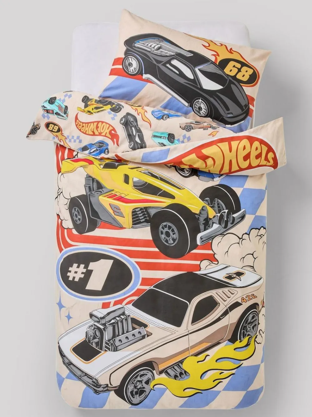 They’ll love our licensed Hot Wheels duvet cover and pillowcase set, in a reversible all-over print and made from a comfortable cotton-blend fabric. Cotton-blend Duvet cover and pillowcase set Hot Wheels licensed graphics Reversible Machine washable. Duvet Cover and Pillowcase:52% Polyester,48% Cotton Single: Width 135cm x Length 200cm, with 1x standard pillowcase.