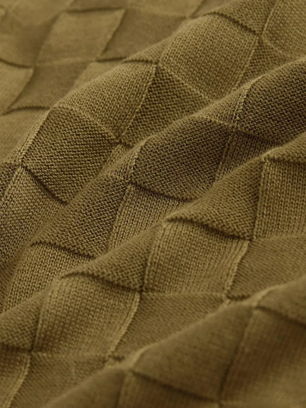 Discover this premium olive green knitted polo shirt, showcasing a tactile checkerboard texture. Designed with a sleek zip neck and a classic collar, this versatile piece offers a polished look for evening events or office wear. A sophisticated essential for a contemporary, well-curated wardrobe. Olive green Checkerboard knitted texture Regular fit zip neck polo Short sleeves Ribbed cuffs and hem Machine washable. 50% Cotton, 50% TENCEL™ modal.