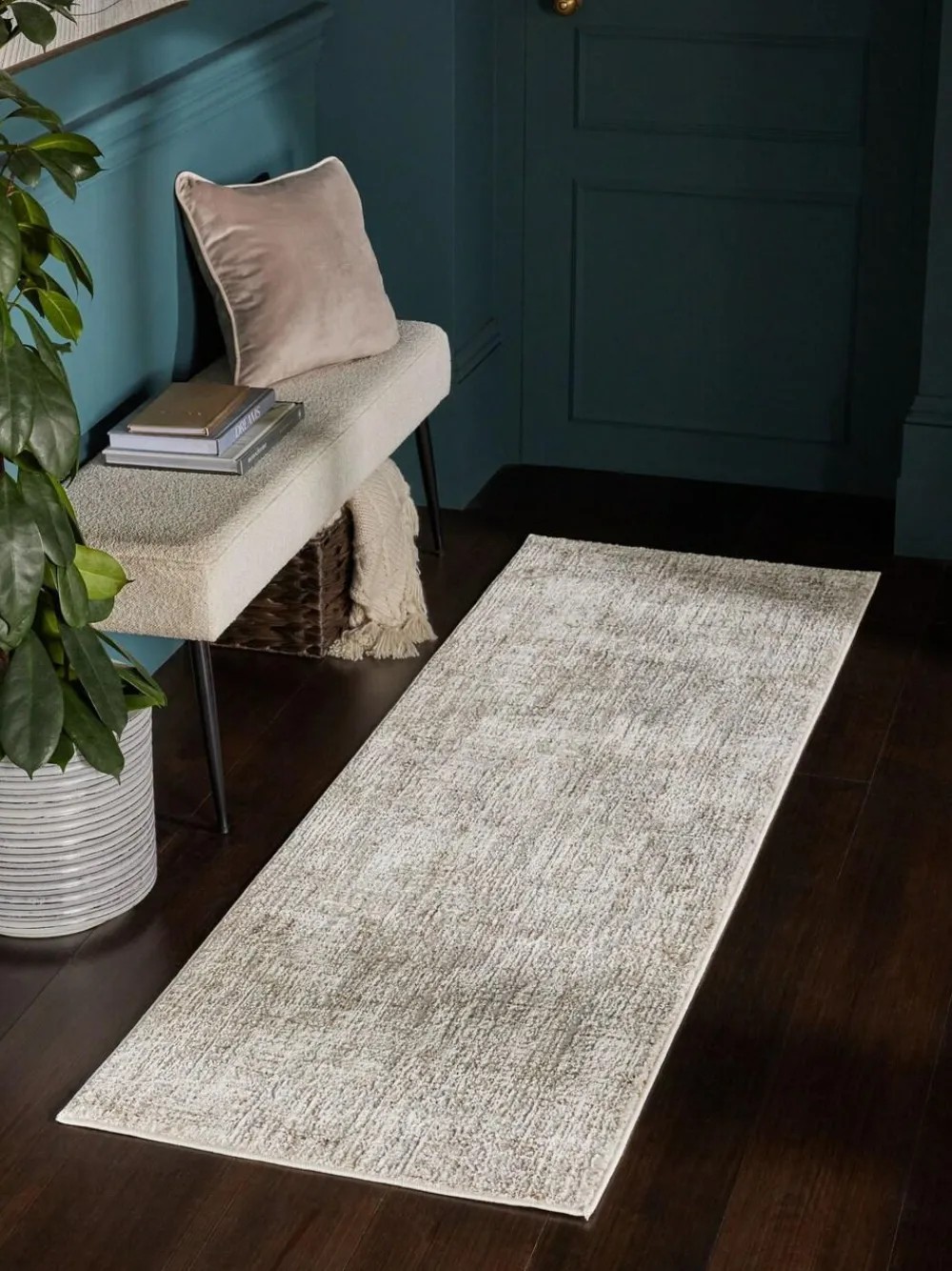 This runner features a subtle, chic texture created by highs and lows with a supersoft feel underfoot. Machine woven using a mix of Polypropolyene and Polyester to give maximum durability, supreme softness and a beautiful all over sheen. Durable and easy to care for since the rug is made of synthetic fibres. We recommend a regular light vacuum to remove any loose fibres from the surface which makes this rug perfect for high traffic areas. Small Runner Length 200cm / Width 66cm Large Runner Length 300cm / Width 66cm 63% Polyester, 37% Polypropylene.