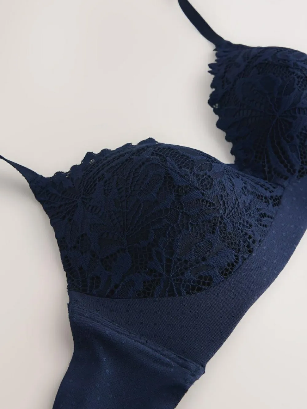 Next Navy Blue Pad Non Wire Lace Ultimate Comfort Bra^Women Bras|All Lingerie