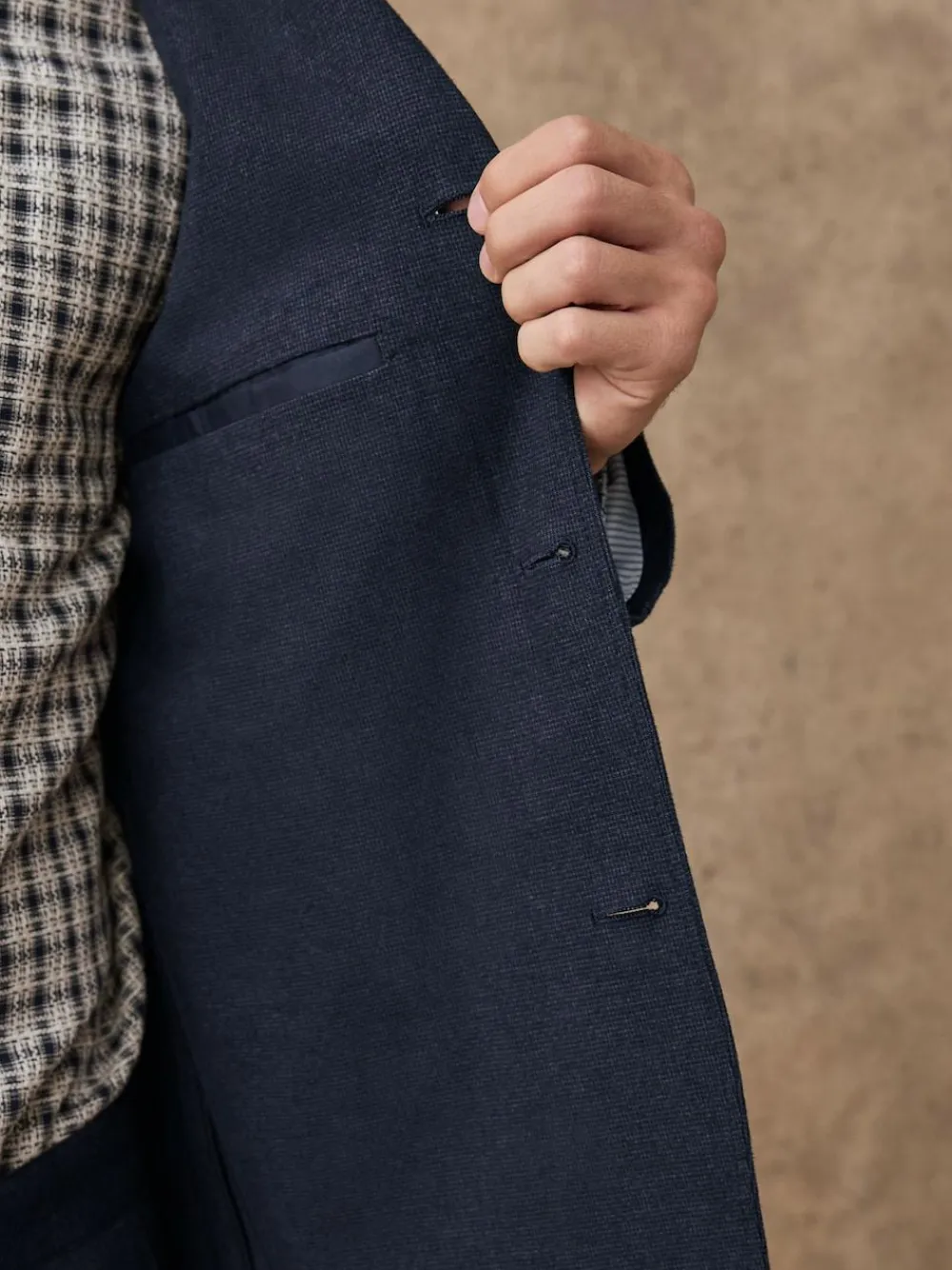 Next Navy Blue Slim Fit Cotton Blend Texture Suit Jacket^ Blue Suits