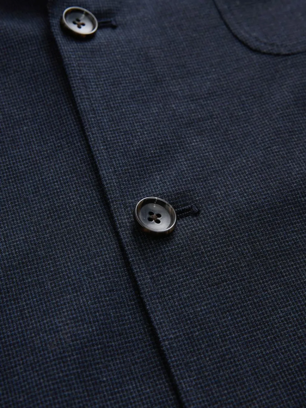 Make a statement in this navy slim-fit suit jacket. The single-breasted two-button fastening and notch lapel create a modern silhouette, while the functional shirt-style cuffs with a singular button add a refined touch. This is a versatile piece perfect for both smart-casual and formal occasions. Slim fit Single-breasted two-button fastening Notch lapel Shirt-style cuff with a singular button Main 48% Cotton, 48% Viscose, 4% Elastane. Lining 65% Polyester, 35% Cotton.