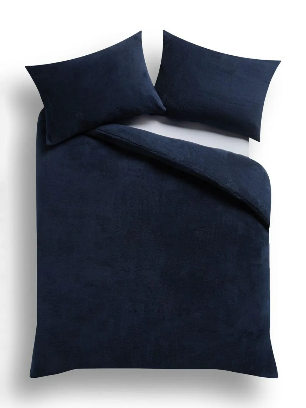 Next Navy Blue Teddy Fleece Duvet Cover and Pillowcase Set^ Bedsets & Duvet Covers