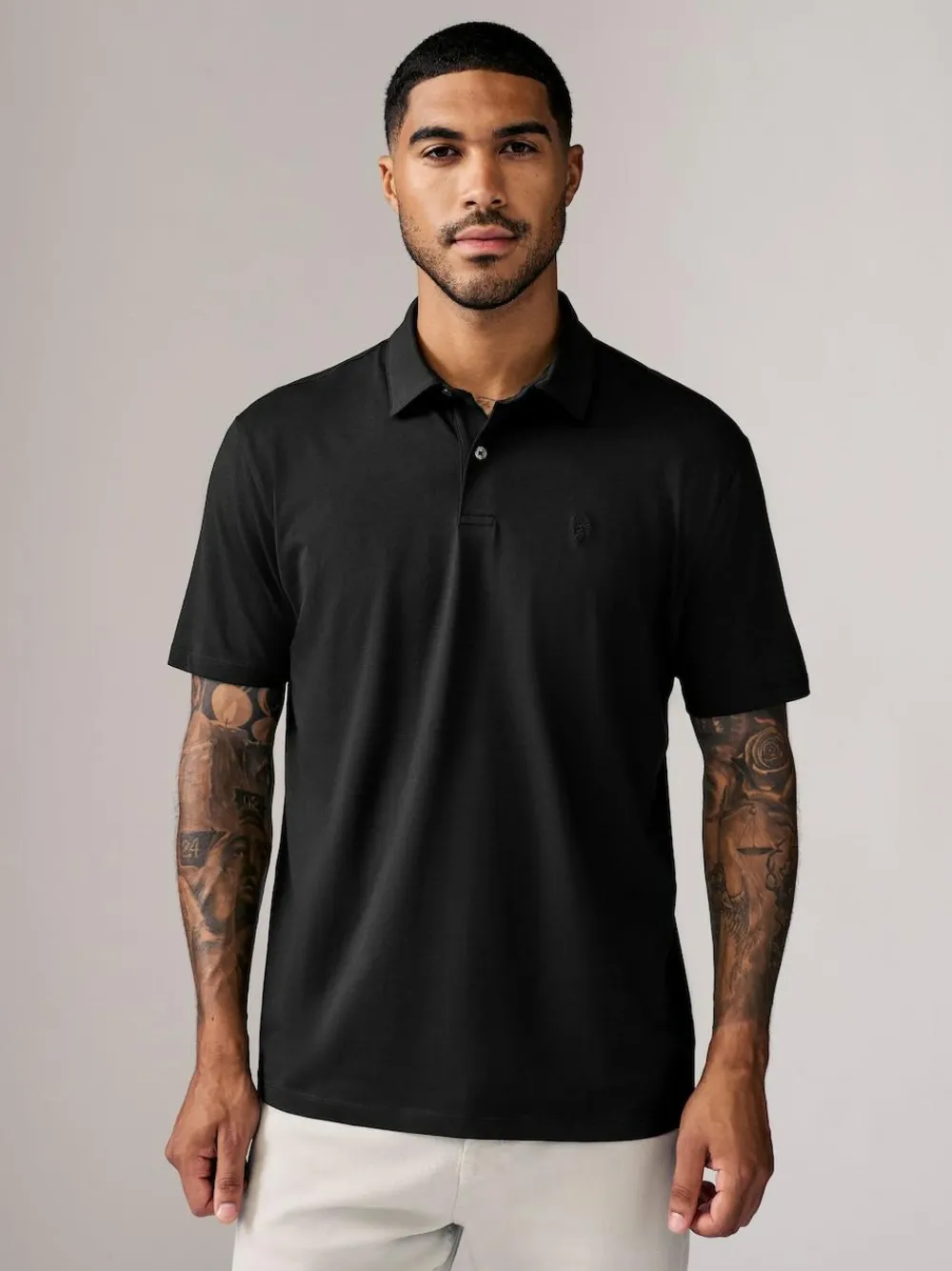 Fill up your wardrobe with our five pack of men’s polo shirts. A staple piece that can be styled up or down, this multipack includes five cotton rich shirts with button fastening, collared necks and embroidered detailing. Pack of five Regular fit Collar neck Short sleeve Button placket Machine washable. 5 x Polo Shirt 96% Cotton, 4% Elastane.