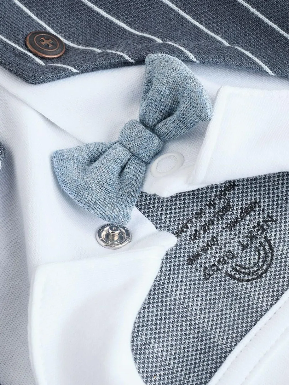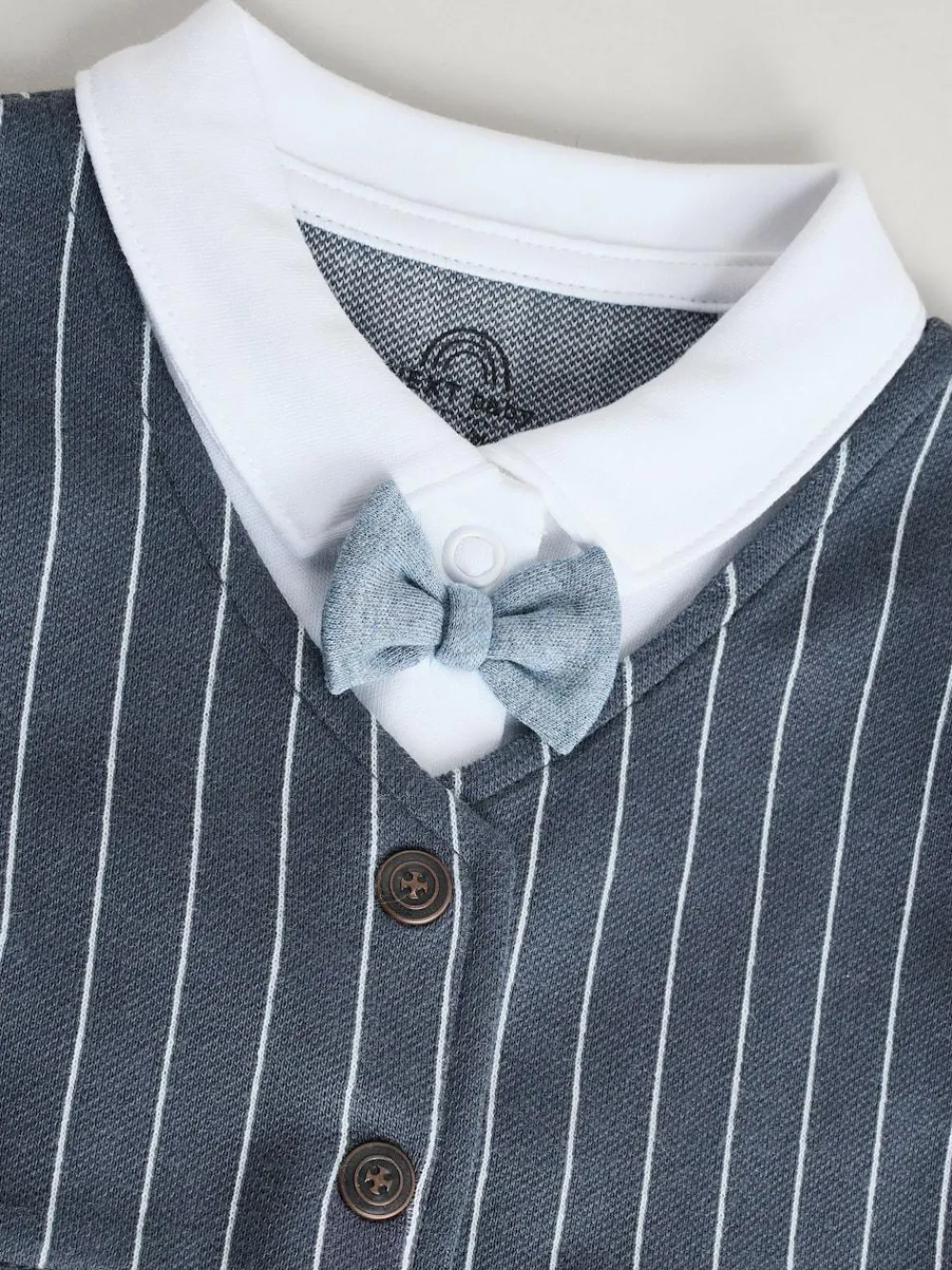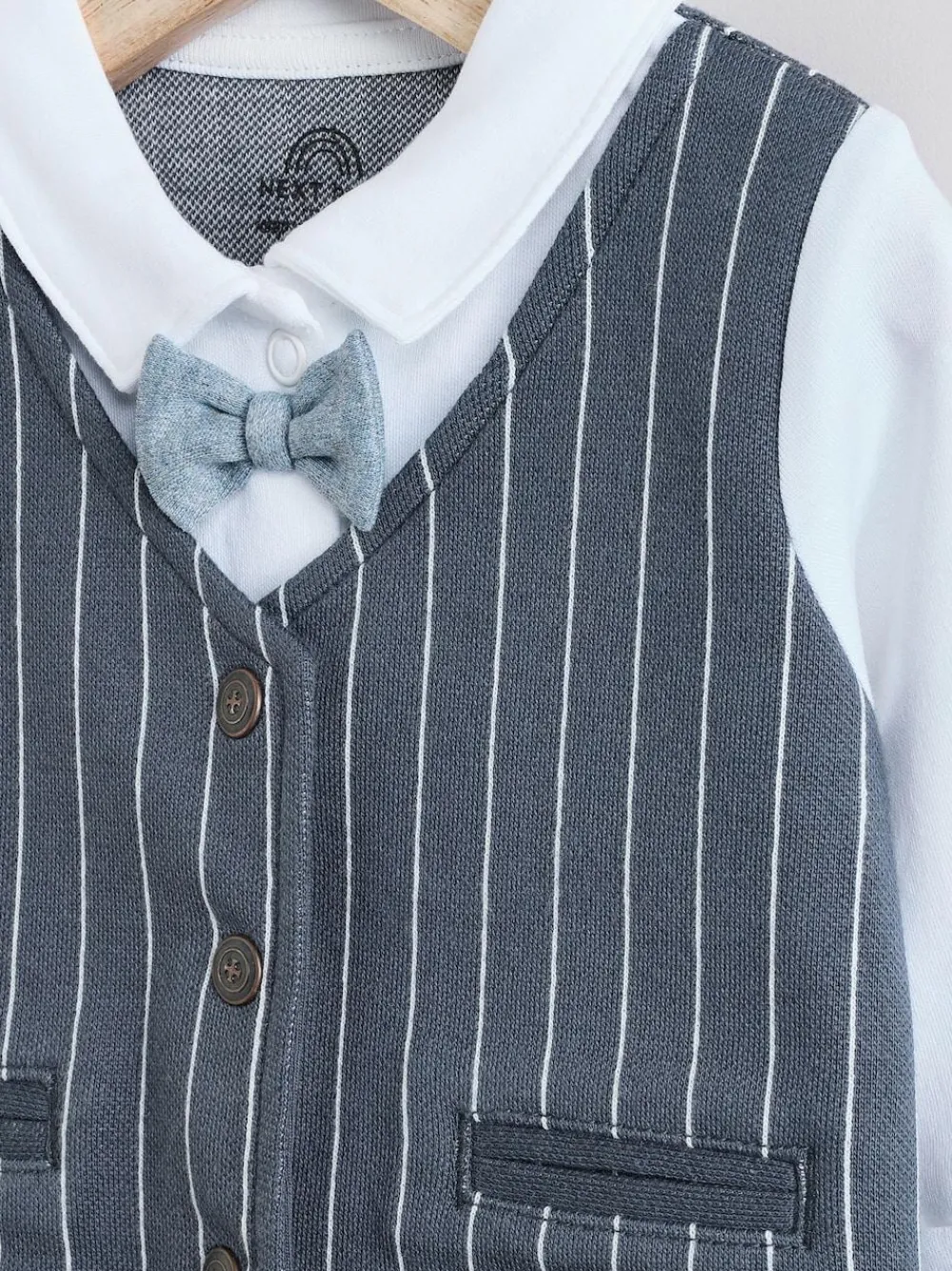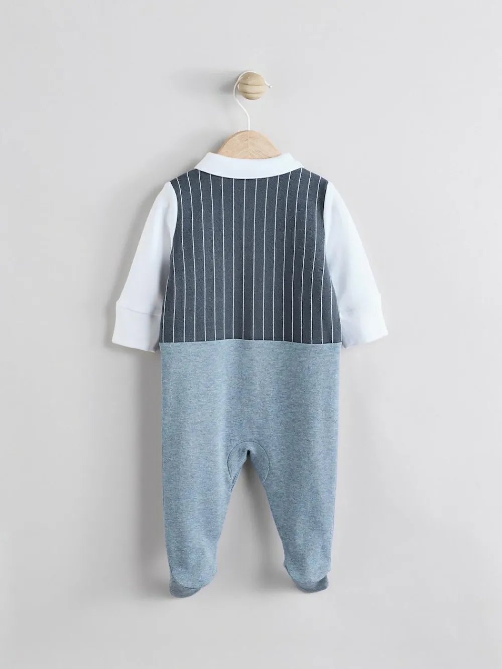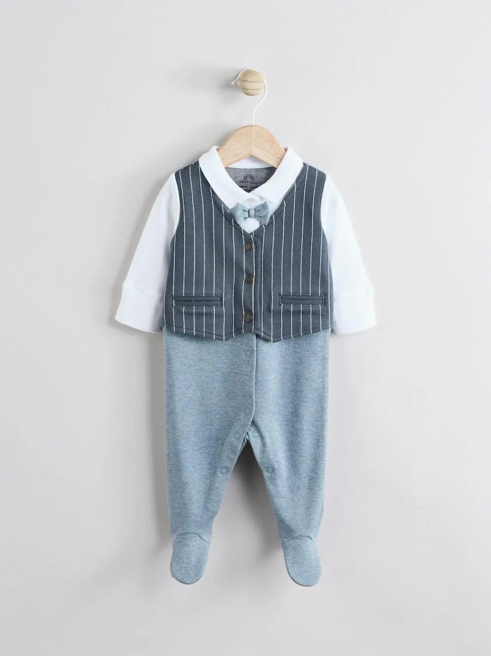 They’ll look ever so smart in this adorable smart-style sleepsuit, made from pure cotton with a collar, waistcoat and bow-tie design, finished with a popper fastening and inner lined feet. An anti-slip sole has been added from sizes 9-12 and up. 100% cotton Smart look Collar, bow-tie and waistcoat detail Inner lined feet Machine washable. 100% Cotton. Warning: Keep away from fire and flames.