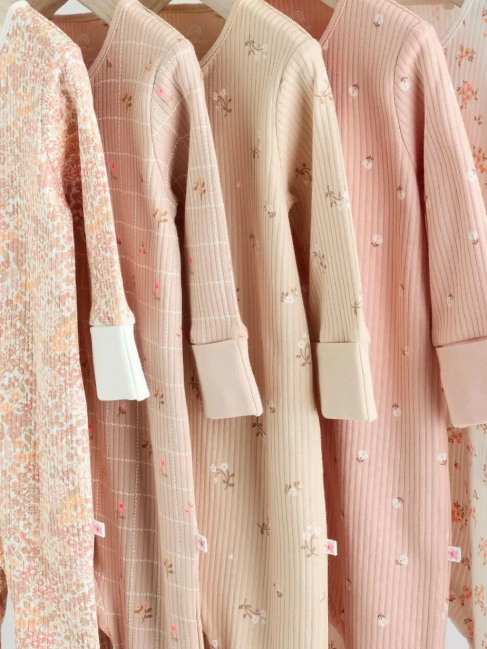 Nestle your newborn in these comfy sleepsuits. Sold as a 5 pack, each piece is made from pure cotton and coated a cute floral print. With 2 way zip fastening for easy dressing, this set is perfect for stocking up on essentials. 5 pack 100% cotton 2 way zip fastening Floral design Machine washable. 5 x Sleepsuit 100% Cotton. Warning: Keep away from fire and flames.