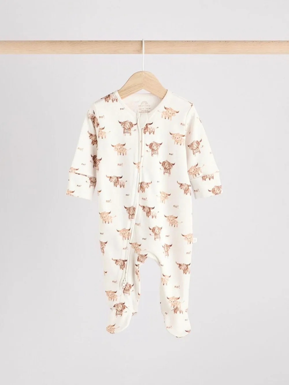 This 3-pack of sleepsuits are the perfect way to add some fun to their bedtime routine, featuring our Hamish the Highland Cow as a printed graphic, set against plain and striped cotton bases, turn-back scratch mitts up to 3-6 months, inner lined feet and an anti-slip sole print from 9-12 months. 3-pack 100% cotton Hamish the Highland Cow design 2-way zip fastening Turn-back scratch mitts up to 3-6 months Inner lined feet Anti-slip sole print from 9-12 months Machine washable. 3 x Sleepsuit 100% Cotton. Warning: Keep away from fire and flames.