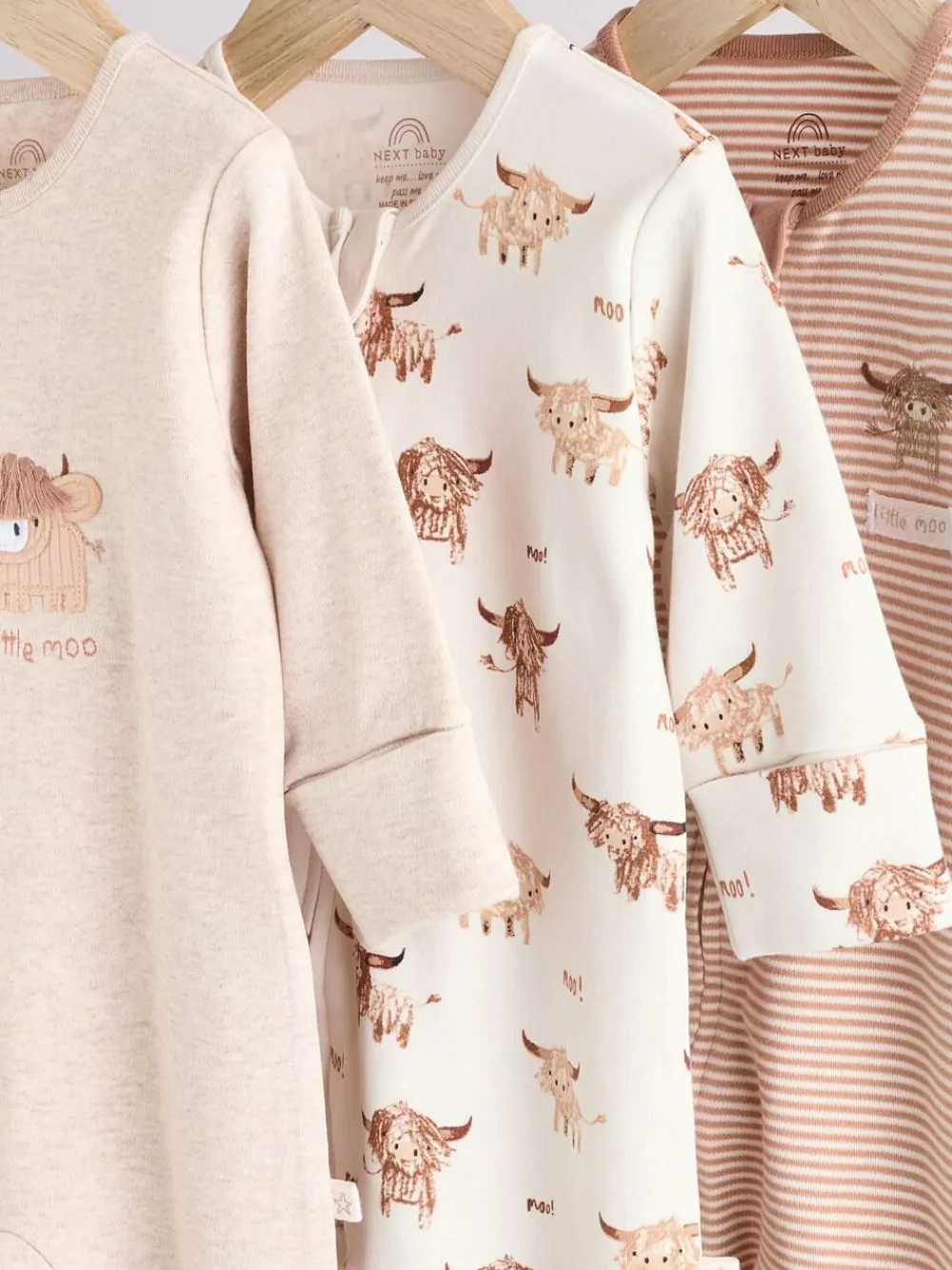 Next Neutral Hamish Baby 100% Cotton Sleepsuits 3 Pack (0mths-2yrs)^BOY Unisex|Nightwear
