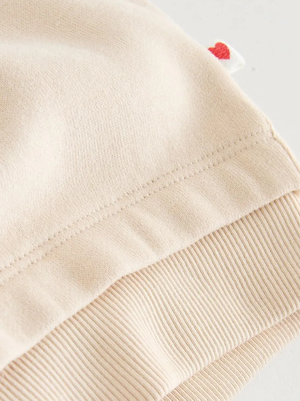 Machine washable. Sweater 90% Cotton, 10% Recycled polyester. Jogger 95% Cotton, 5% Elastane. Warning: Keep away from fire and flames.