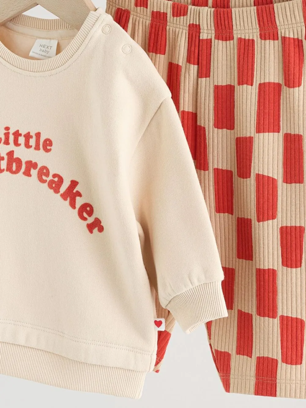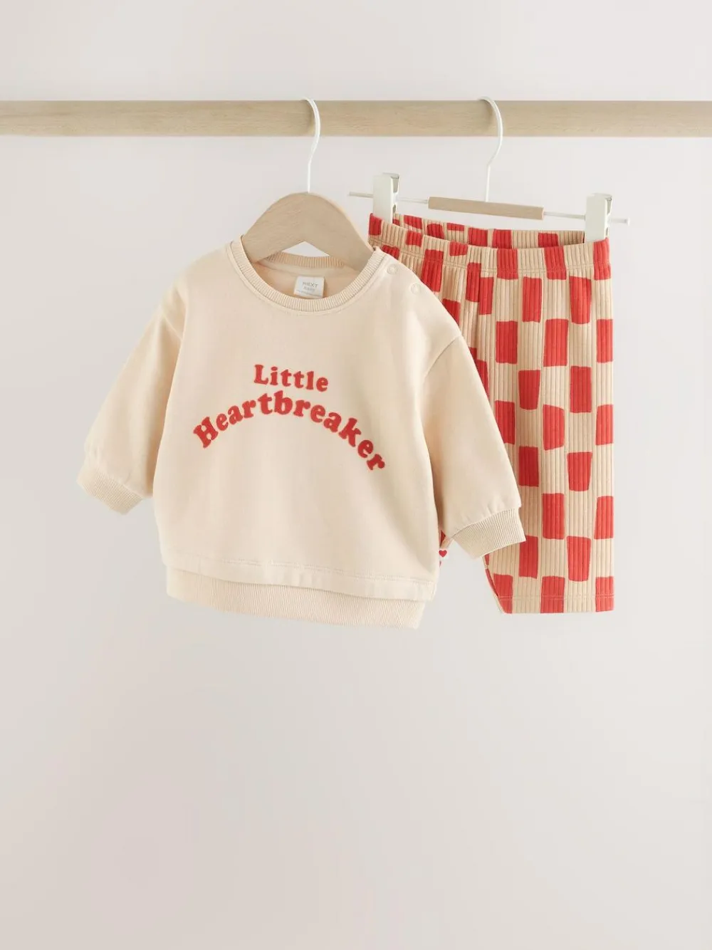 Next Neutral/Red Heartbreaker Sweatshirt and Leggings Baby Set (0mths-2yrs)^BOY Sweatshirts & Hoodies|Sets & Co-Ords