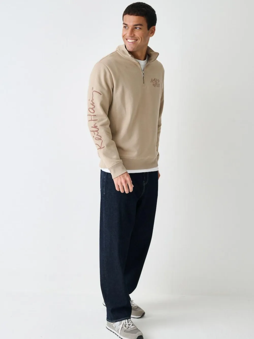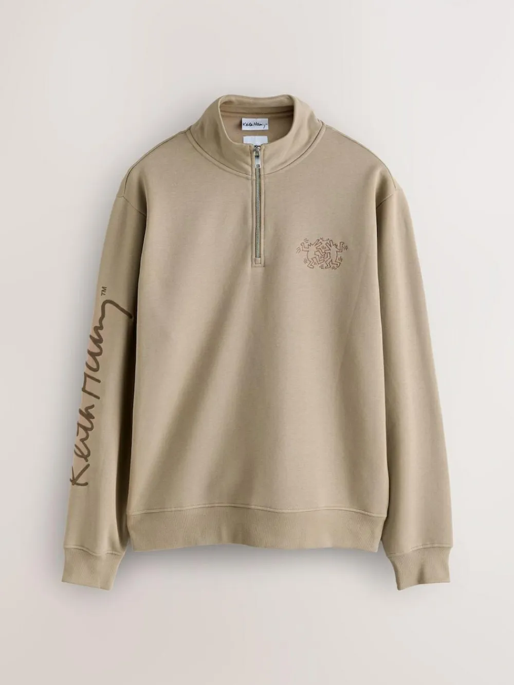 Next Neutral Stone Keith Haring Licence Graphic Print Quarter Zip Neck Sweatshirt^ Sweatshirts & Hoodies|Sweatshirts & Hoodies
