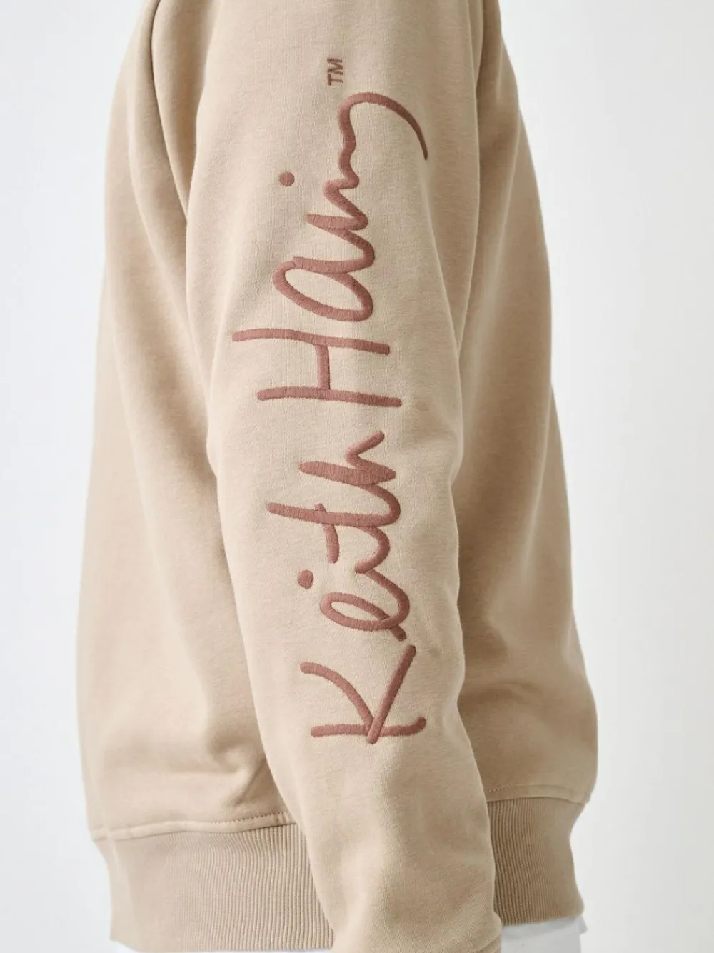 Showcase iconic art with this stylish quarter zip sweatshirt featuring artwork by Keith Haring. The smart-casual piece includes an eye-catching embroidered sleeve graphic and a neat small embroidered chest hit. Artwork by Keith Haring Embroidered sleeve Small embroidered chest hit Machine washable. 65% Cotton, 35% Recycled polyester.