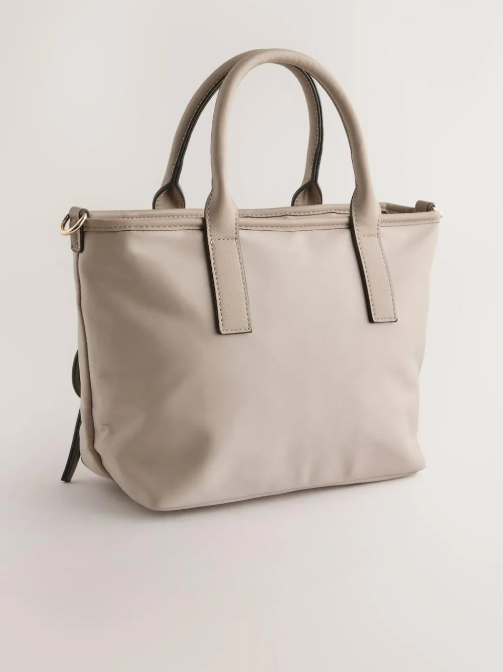 Enhance your daily ensemble with this versatile cross-body bag, designed to offer both style and practicality. Crafted from a durable soft fabric, this chic accessory is perfect for keeping your essentials secure during busy days on the go or casual weekend outings. Removable adjustable strap Zip opening Height 20.5cm Width 33cm Depth 13cm Outer 100% Nylon. Lining 100% Recycled polyester. Trim 100% PU.