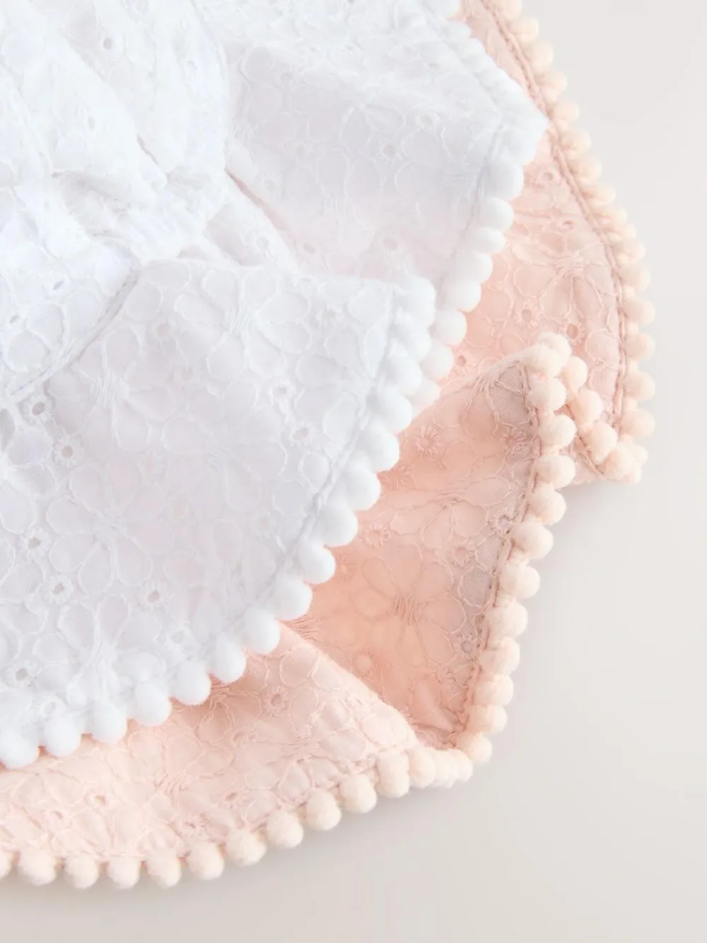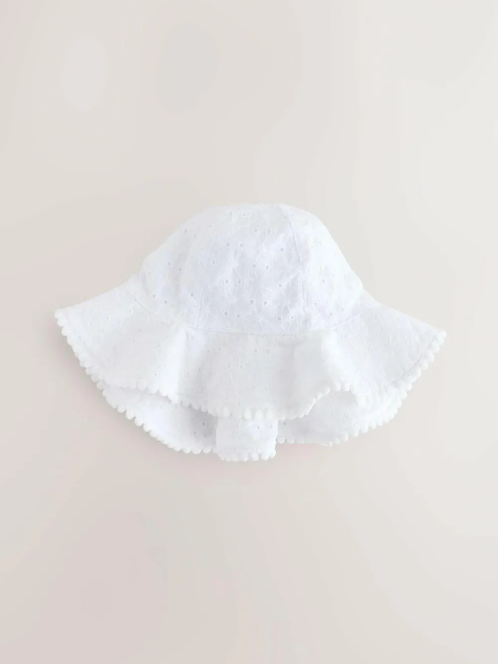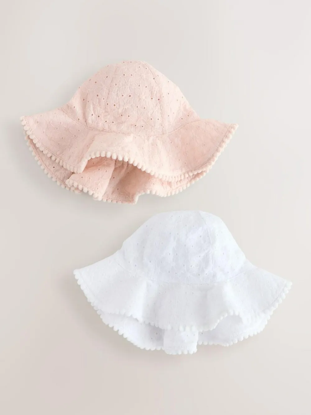Next Pink and White Broderie 2pk Baby Bucket Hat (0mths-2yrs)^ Hats & Scratch Mitts|Newborn Accessories