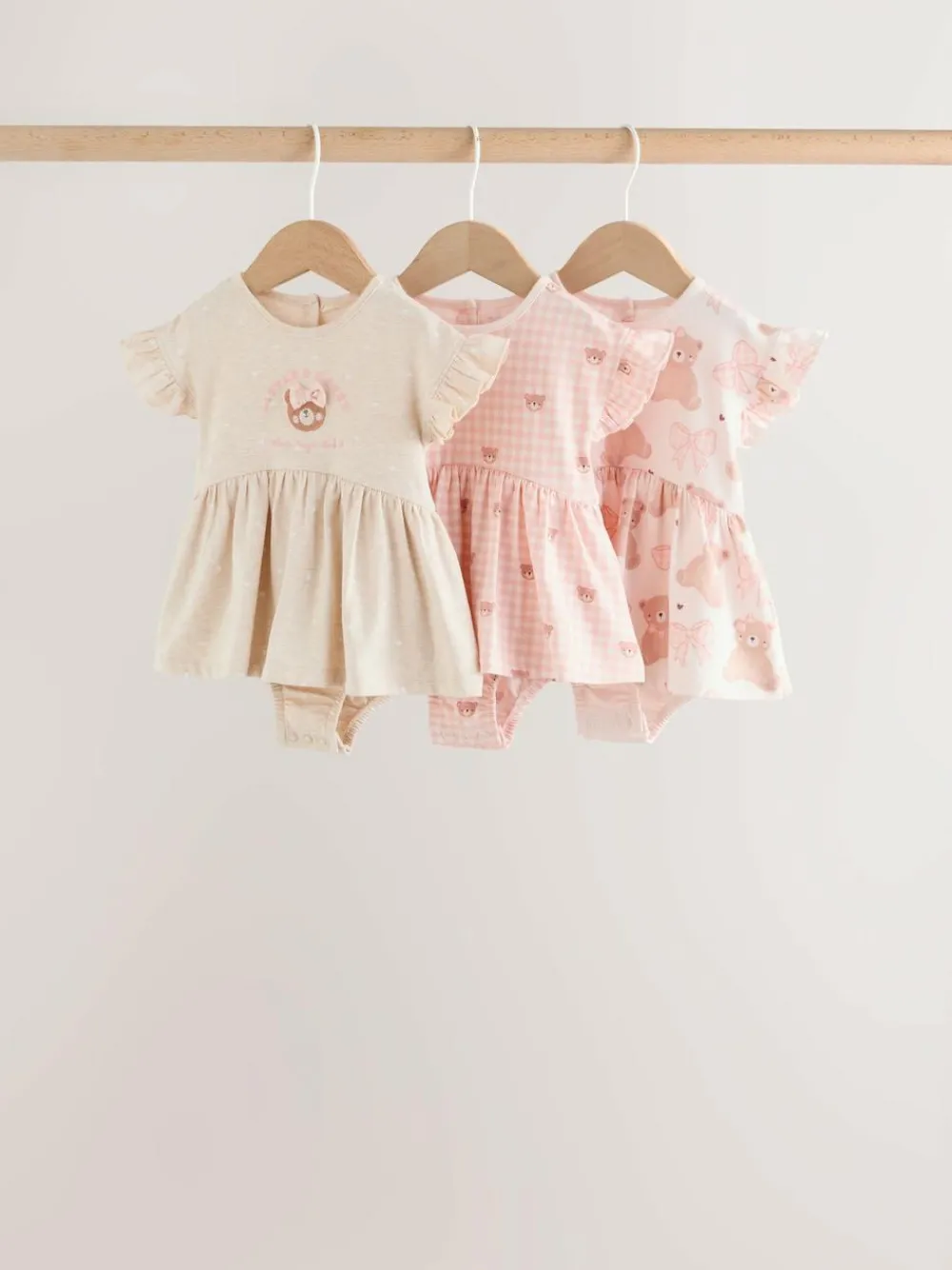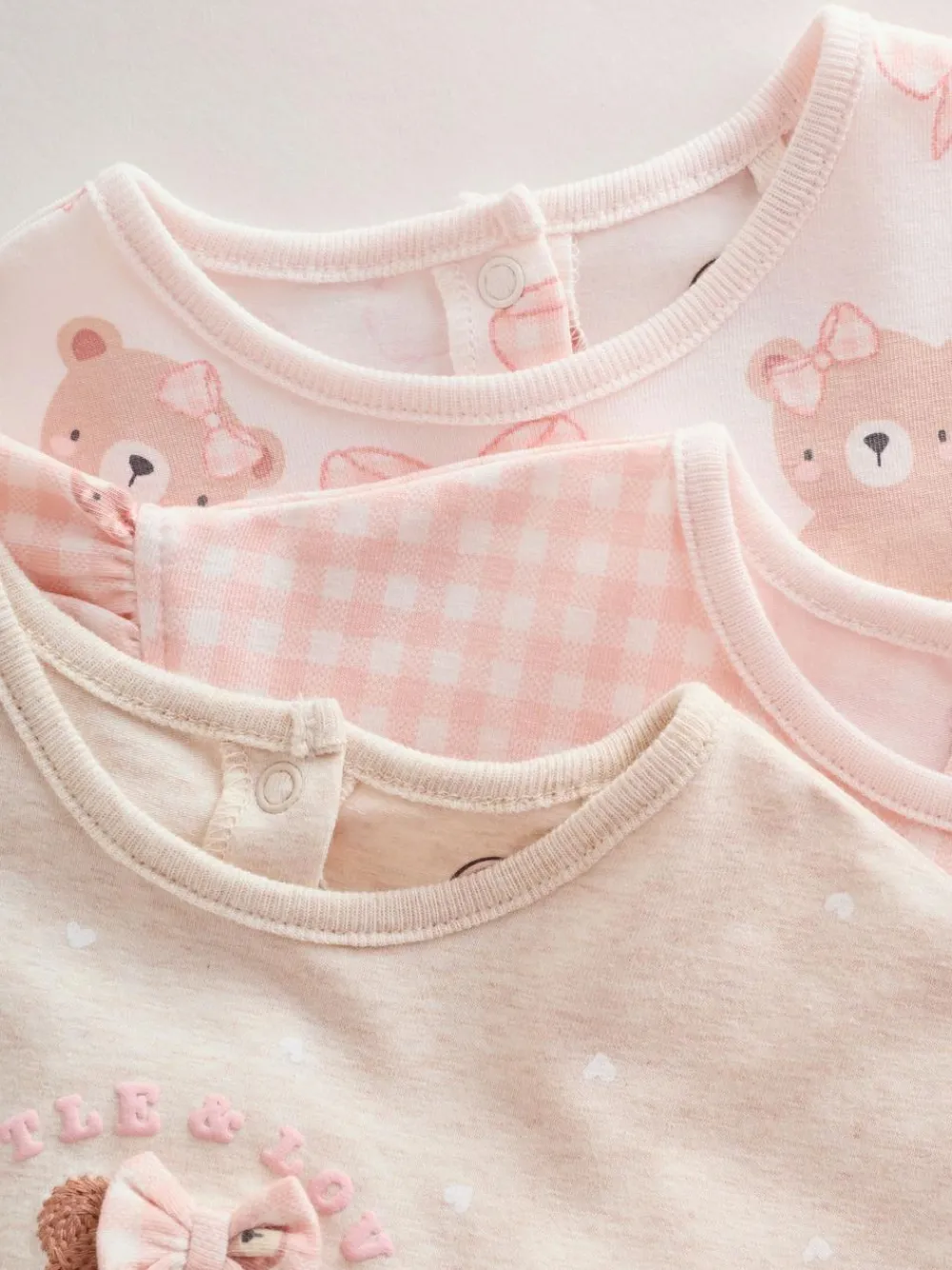 Next Pink Bear Embroidered Jersey Baby Rompers 3 Pack^ Sets & Coords|Rompers & Overalls