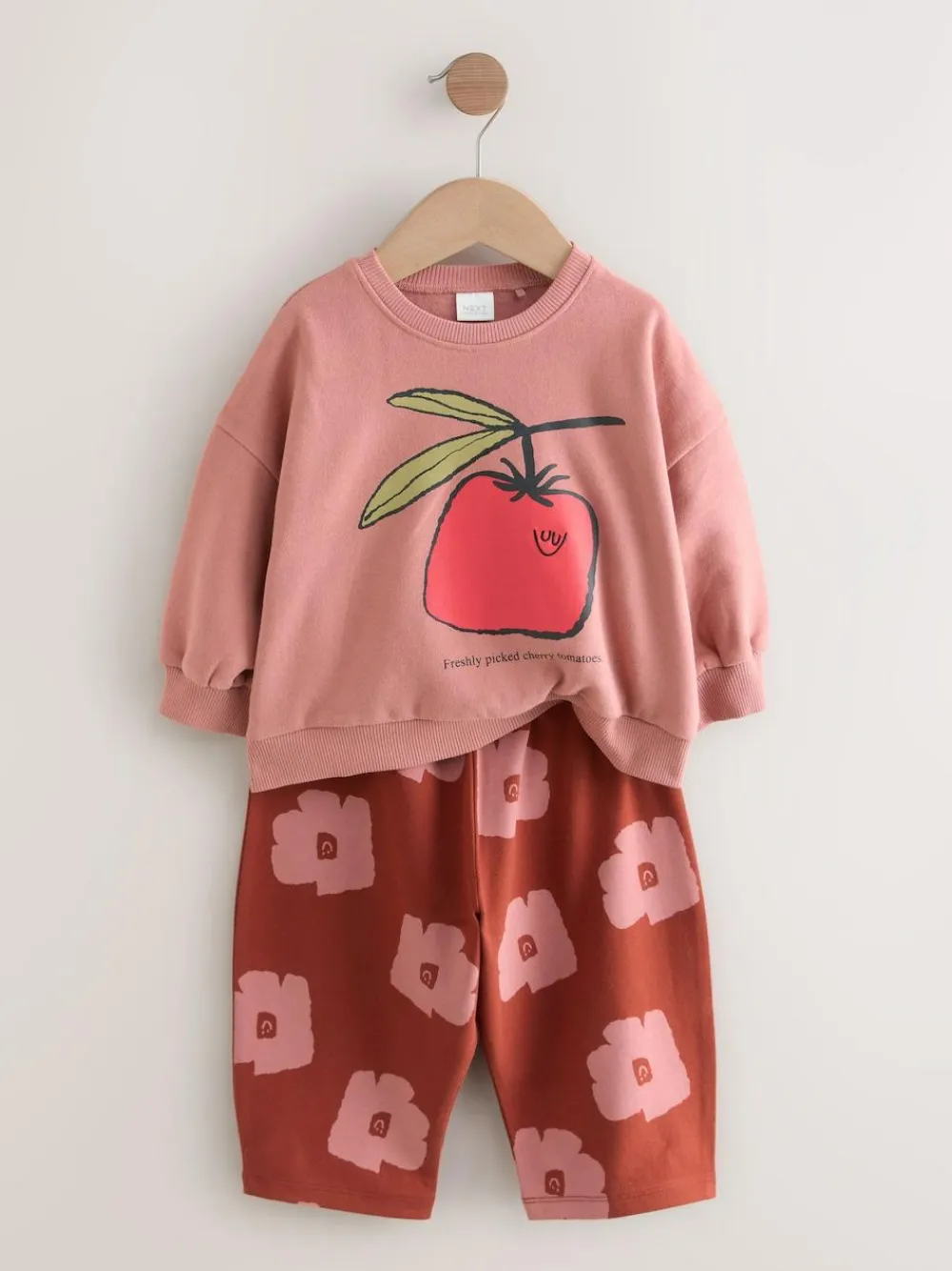 Next Pink/Brown Tomato Sweatshirt and Barrel Leg Joggers Set (3mths-7yrs)^ Baby Girls|Sweatshirts & Hoodies