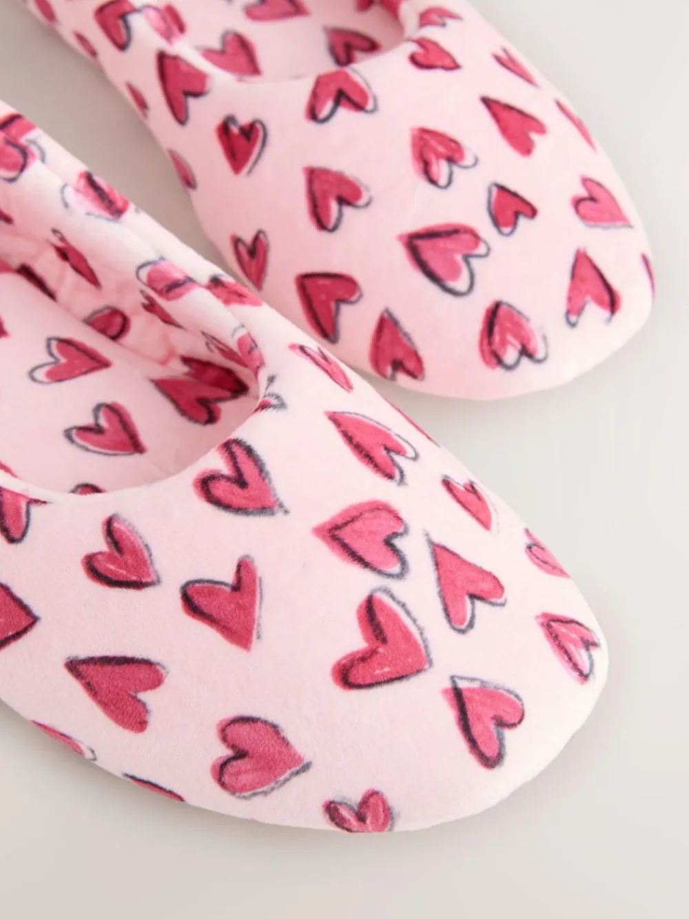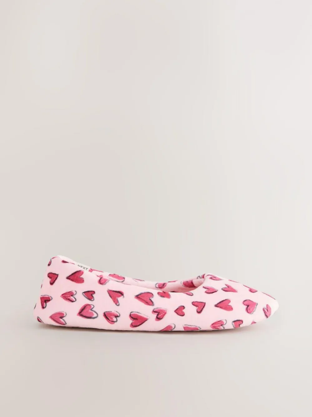 Keep your feet cosy and stylish with these charming pink hearts ballet slippers. Designed in a classic ballet flat silhouette, these slippers feature an all-over hand-drawn heart print in vibrant shades of red and pink. Crafted for relaxation, they offer a super soft and comfy feel that makes them perfect for unwinding at home. Super soft and comfy ballet flat slippers Charming all-over pink and red heart print Classic slip-on ballet silhouette Lightweight and flexible design Upper – Textile, Lining & Sock – Textile, Sole – Textile, Other Materials.