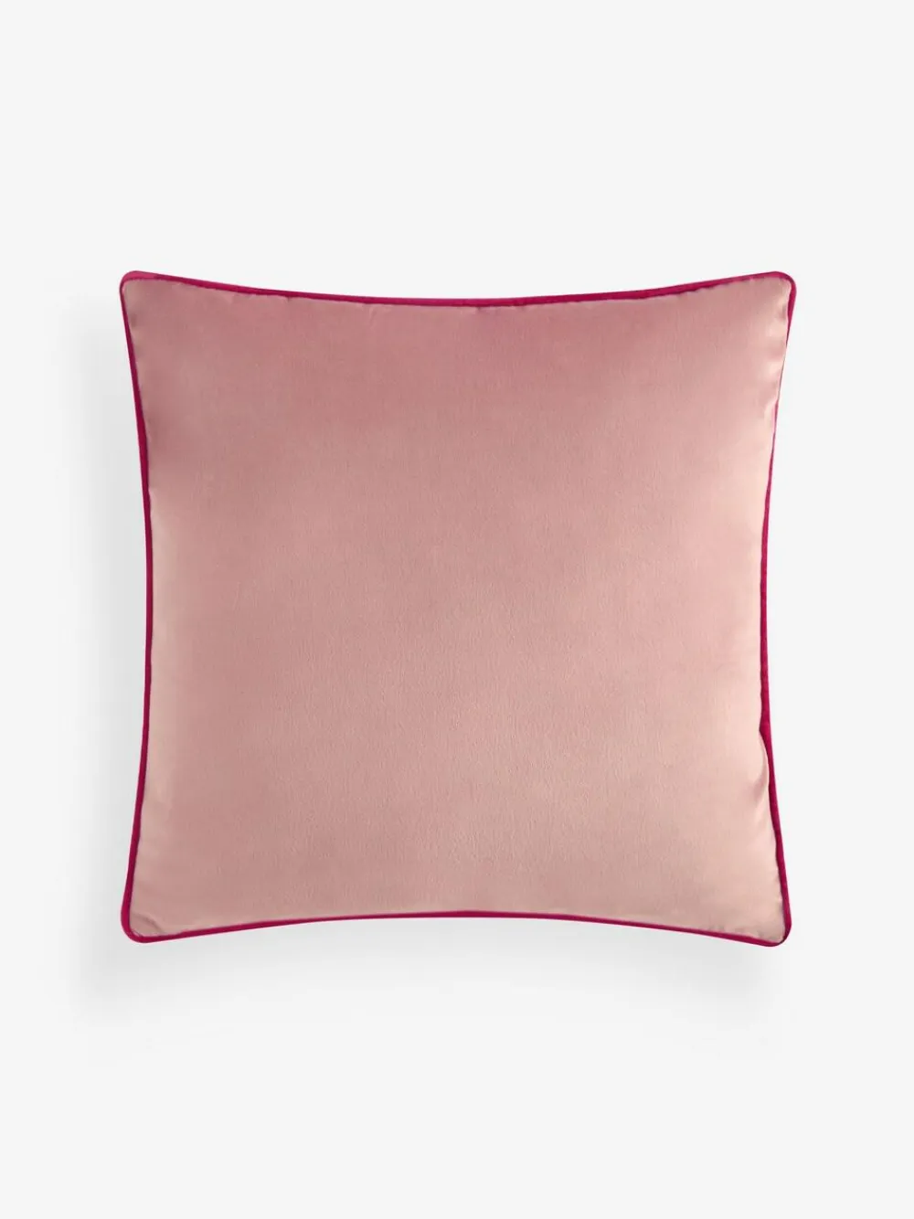 Next Pink Matte Velvet Contrast Pipe 50 x 50cm Cushion^ Cushions & Throws