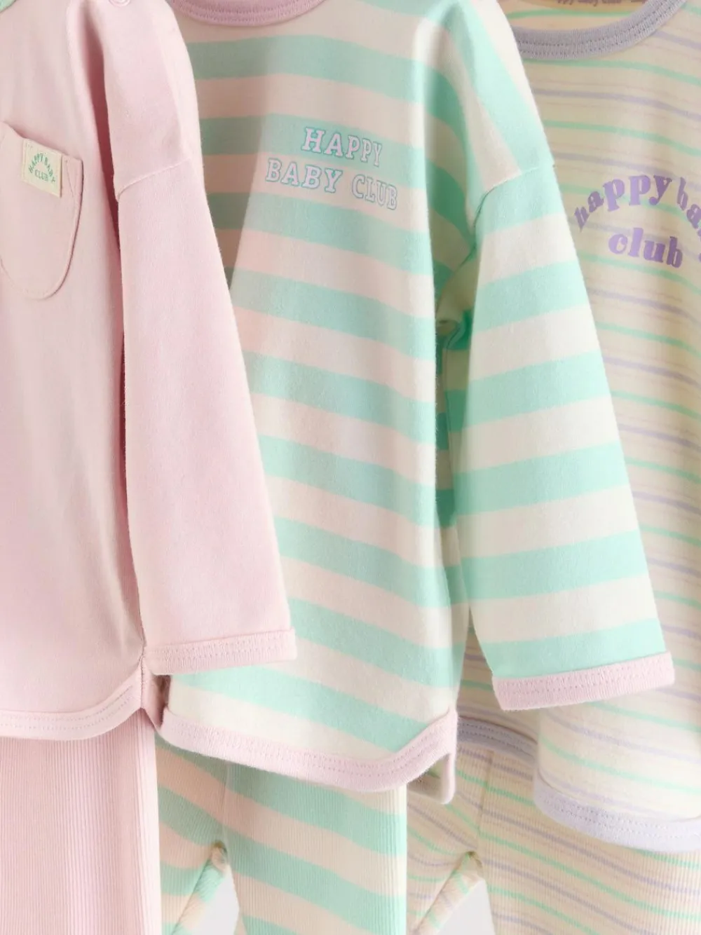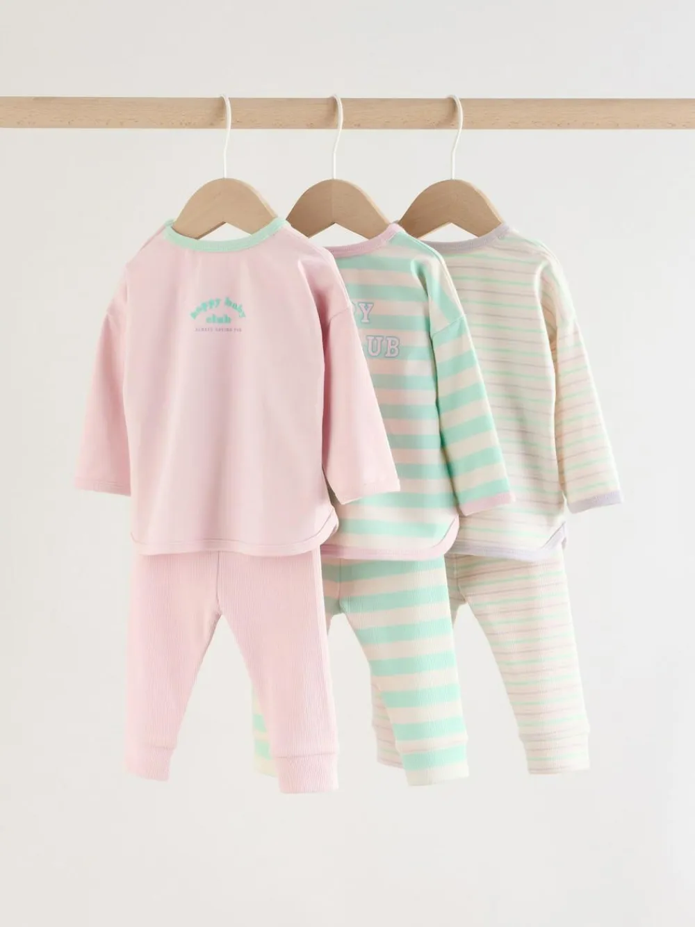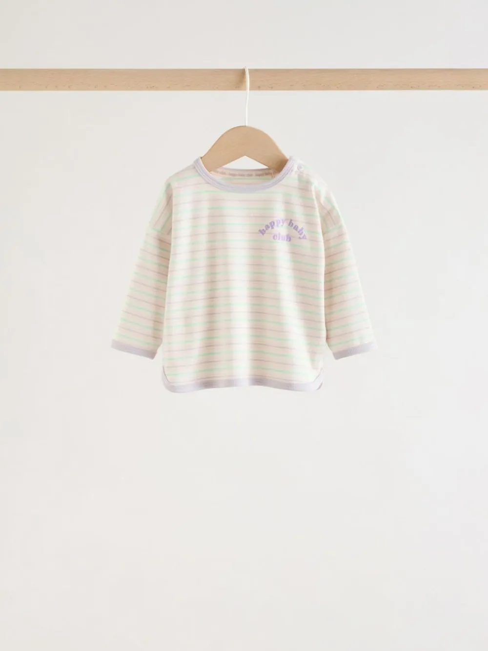 Fill their wardrobe with this fun 6 piece set of mix and match Pink stripe T-Shirts and leggings. Featuring fun all over prints with sweet characters, made from supersoft cotton-stretch fabric for extra comfort. 6-piece set Long sleeve T-Shirts Fun prints Matching leggings Elasticated waistband Machine washable. T-shirt, T-shirt and T-shirt 92% Cotton, 8% Elastane. Leggings, Leggings And Leggings 95% Cotton, 5% Elastane. Warning: Keep away from fire and flames.