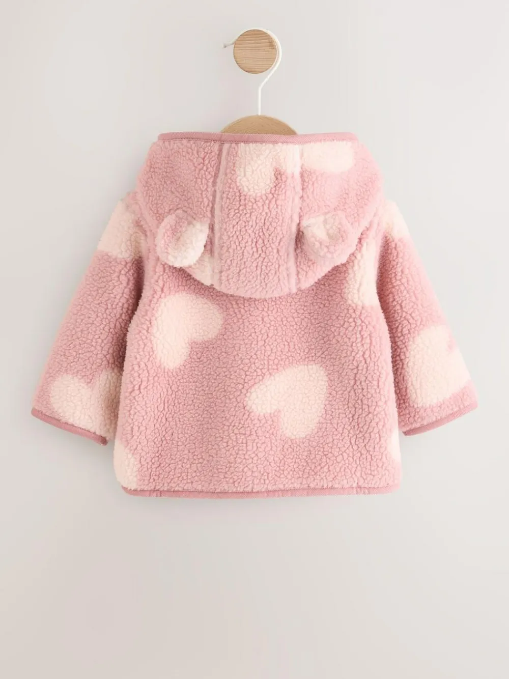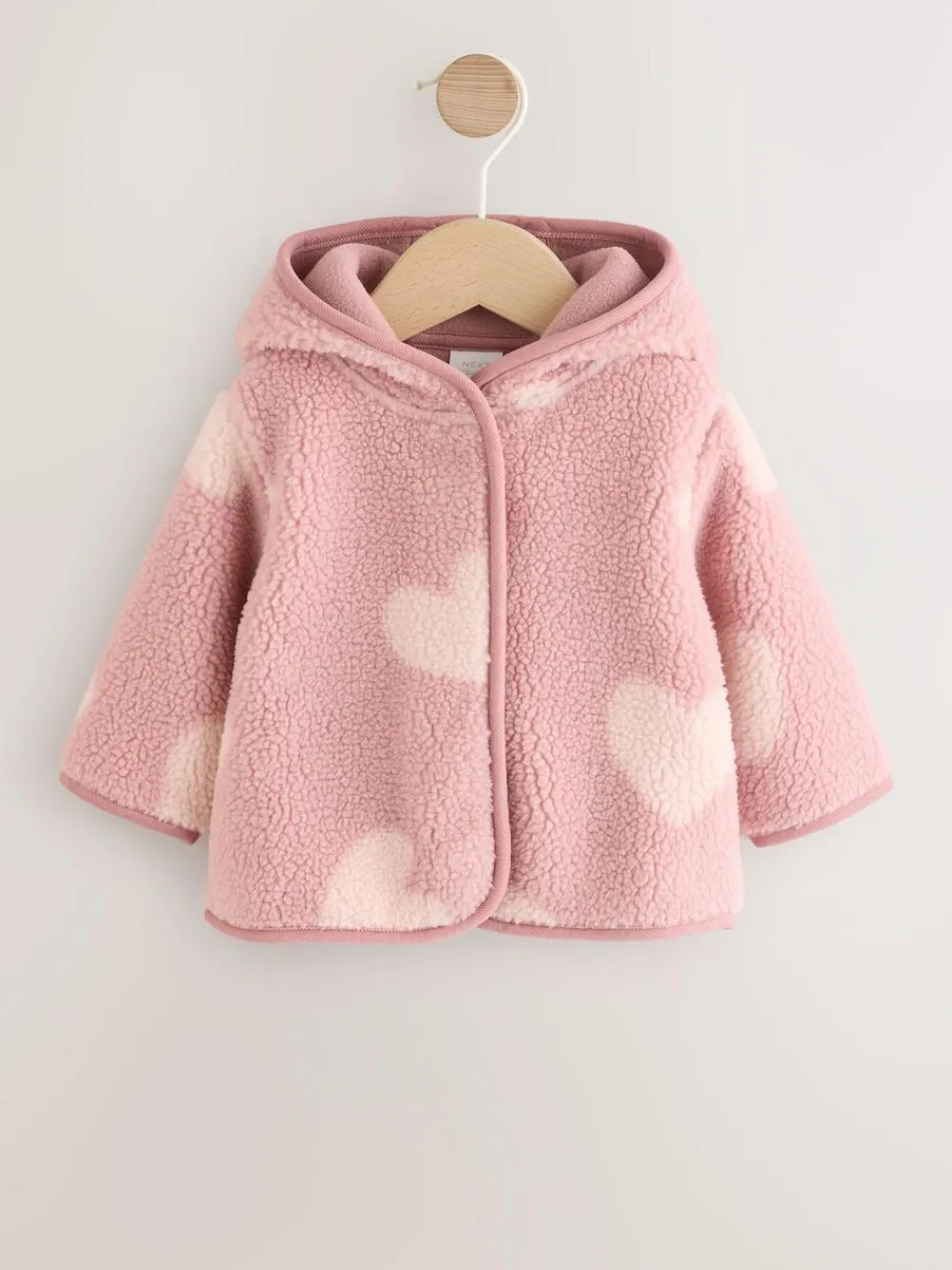 Next Pink Tonal Heart Printed Borg Baby Jacket (0-18mths)^ Baby Winter Clothing|Coats, Jackets & Pramsuits