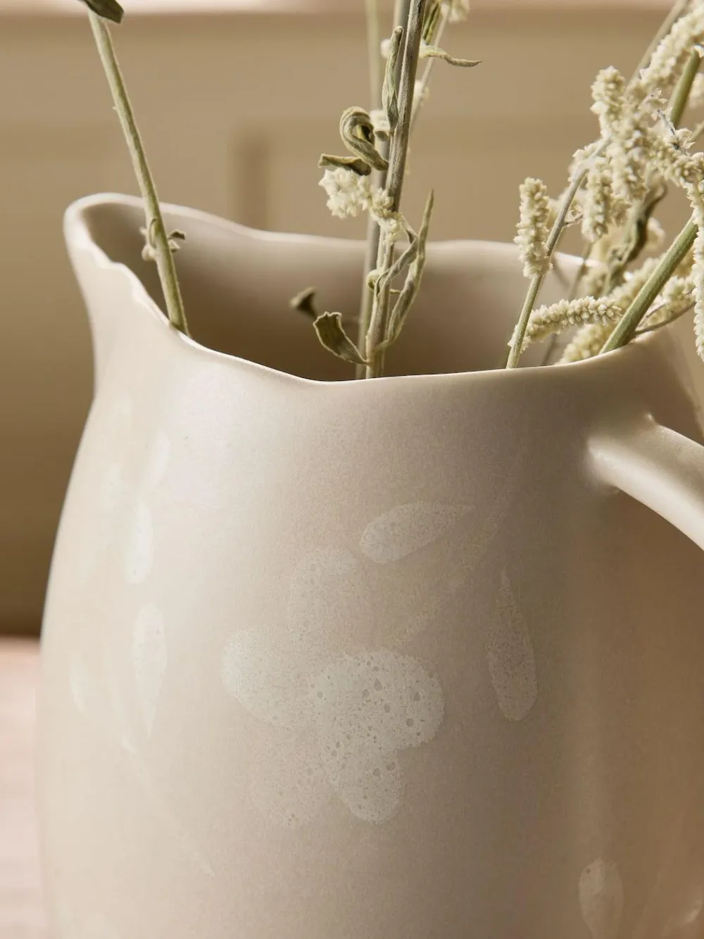 Our Ceramic Jug Vase is a wonderful piece of Portuguese craftsmanship, featuring a unique, appealing texture and design. This hand finished jug is the perfect decorative accent for a shelf or mantle. This item is intended for decorative use only and is not suitable for holding food or drink. Height 27cm Width 22cm Depth 22cm 100% Stoneware.