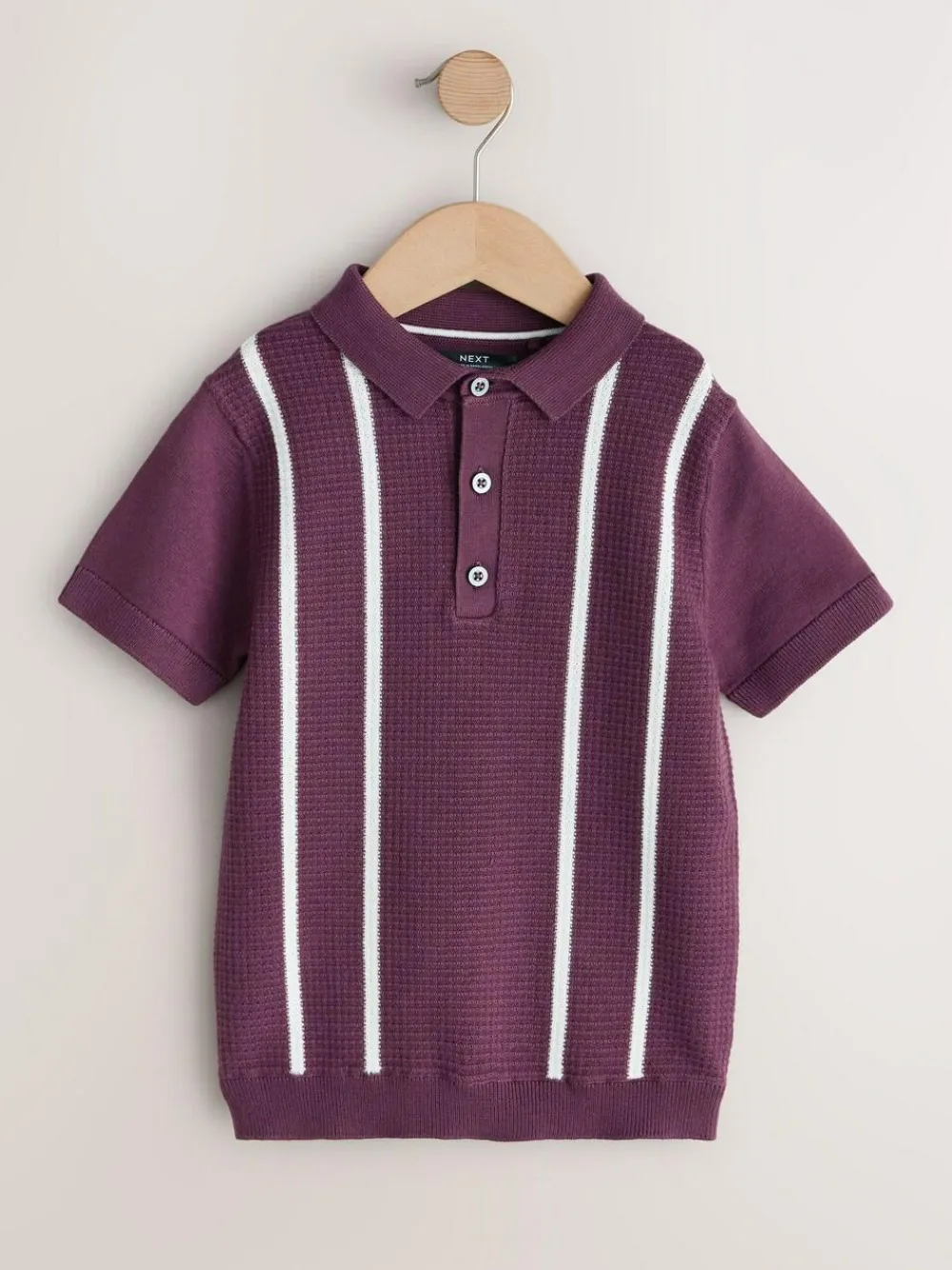 Next Plum Purple Knitted Button Neck Polo Shirt (3-16yrs)^BOY Knitwear & Sweaters|Knitwear