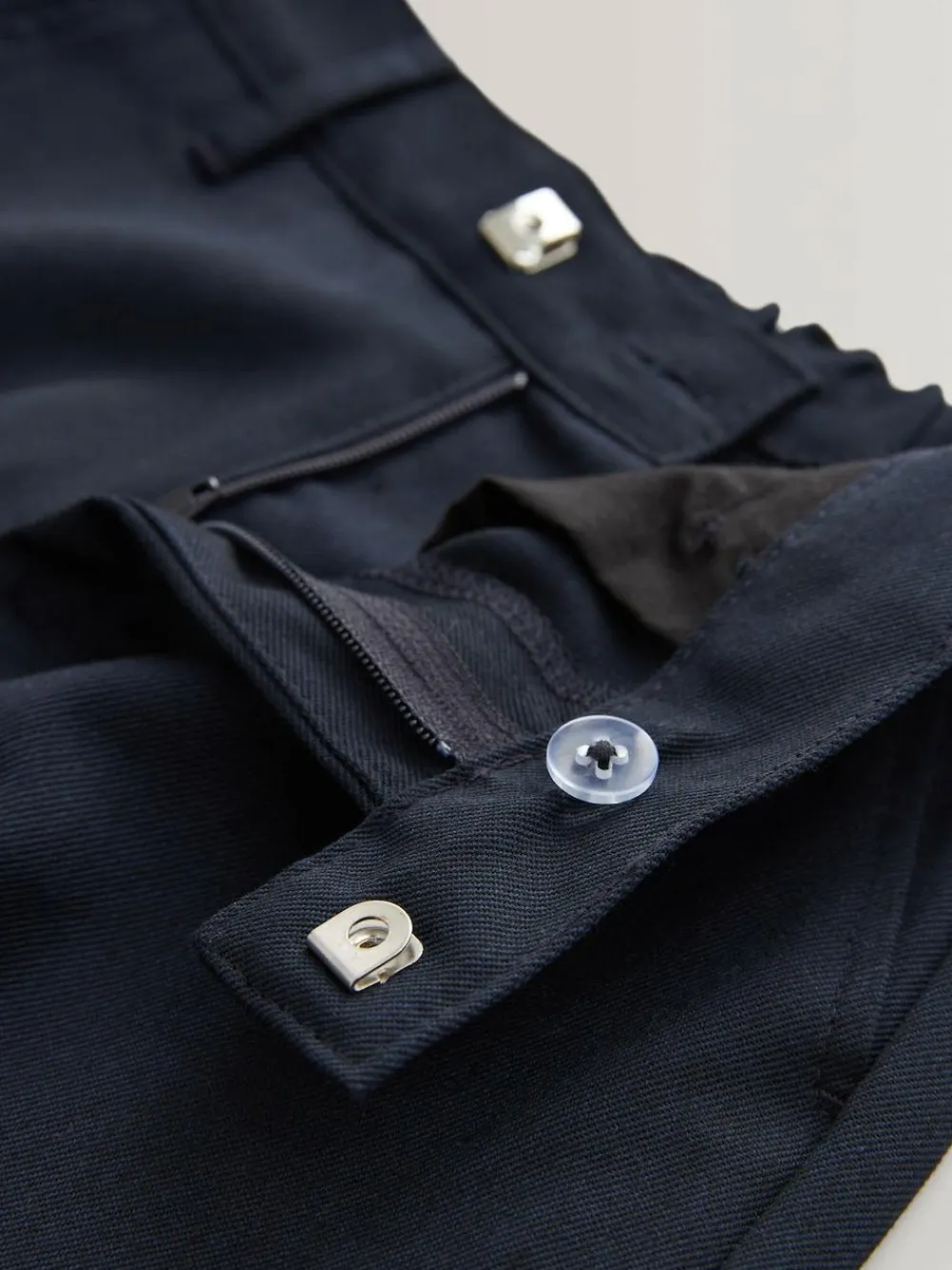 Get them ready for a new term with our slim leg formal school trousers in navy. The adjustable plus waist offers a wider fit and the formal style make these trousers a stylish addition to their school uniform. These easy iron trousers are made with Teflon® technology to make easy work of spills and stains. Key features: Teflon® Technology – A Teflon® finish repels water & water based stains for easy cleaning and quick drying Easy iron fabric – handy easy iron finish Plus Waist: +2 inches for a wider fit on the waist Machine washable Adjustable waist Formal style Zip flyHook and bar fasteningButton through back pocket Machine washable. 65% Recycled polyester, 35% LENZING™ ECOVERO™ Viscose. Plus fit styles are more generous through the waist and hips for a comfortable fit. , This product is made with teflon. Teflon® is a registered trademark of DuPont.