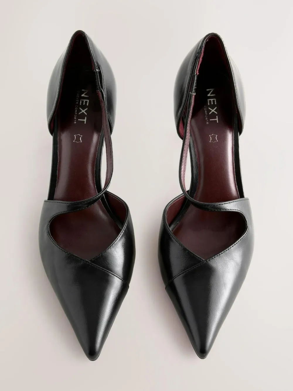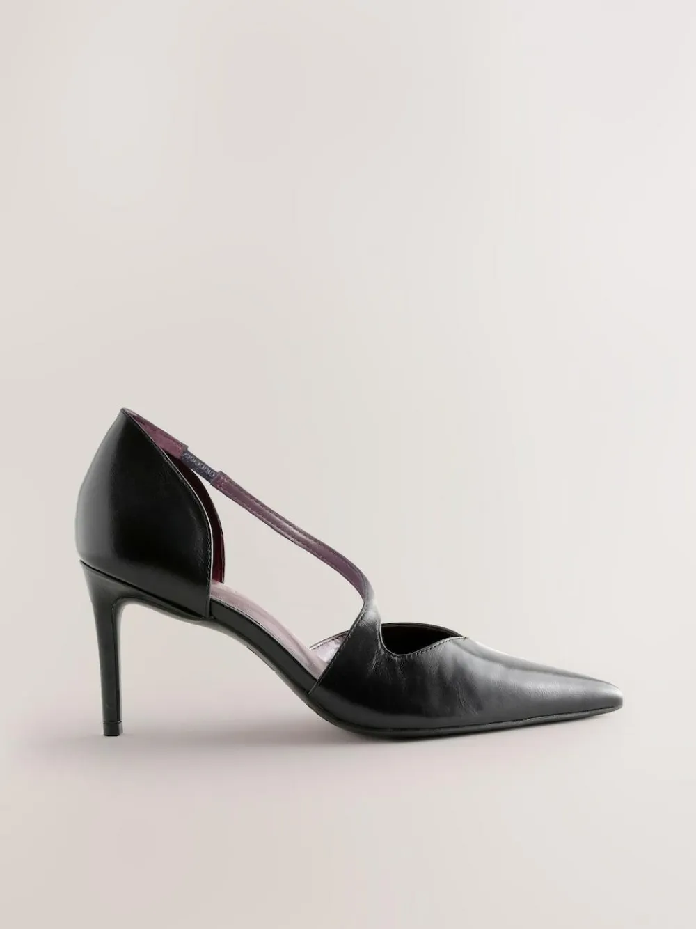 These gorgeous court heels have a premium suede leather upper with a pointed toe, featuring an asymmetric strap and a Forever Comfort® cushioned footbed for all day support, finished with a slim heel. Suede leather upper Pointed toe Forever Comfort® footbed Slim heel Heel height 8.5cm. Upper – Leather, Lining & Sock – Other Materials, Sole – Other Materials.