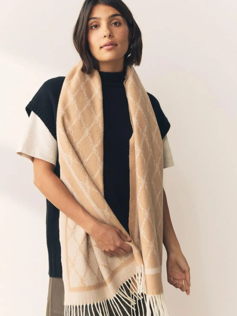 Next Premium Made in Italy Jacquard Monogram 100% Wool Midweight Scarf^Women Hats, Gloves & Scarves|Hats, Gloves & Scarves