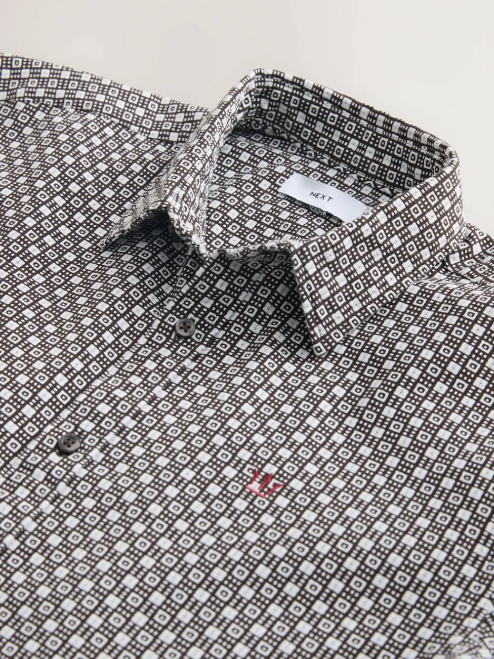 Next Printed Stretch Oxford Short Sleeve Shirt^ Shirts