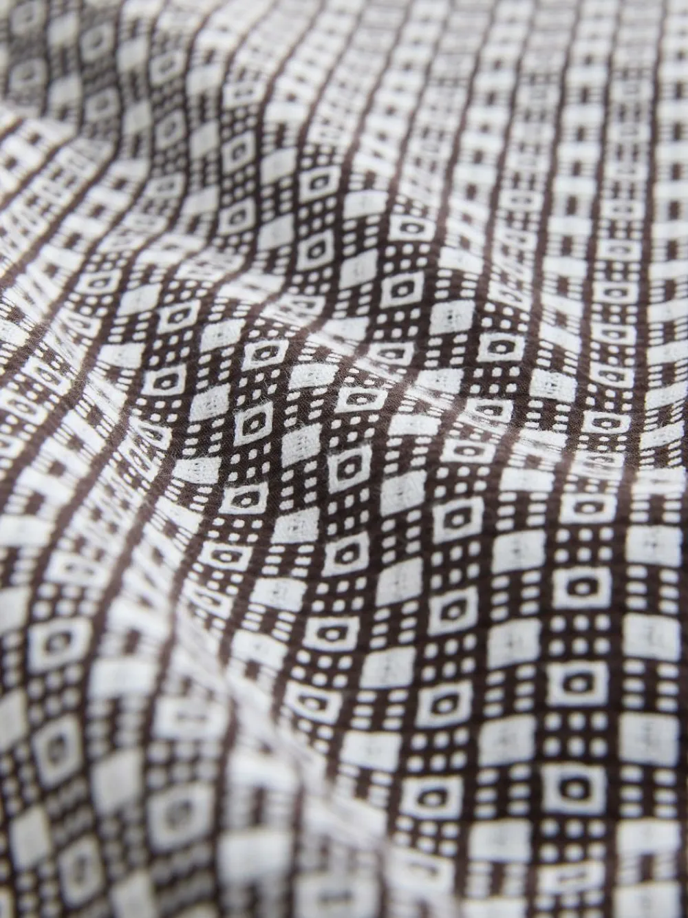 Refresh your casual wardrobe with this rust brown Short Sleeve Shirt. Crafted from 100% cotton with added stretch for comfort, it features an all-over geo jacquard print and a distinctive trident embroidery detail. Ideal for warm weather, this shirt offers a relaxed yet stylish look. Rust brown 100% cotton Geo jacquard print Button-through front Embroidered trident detail Short sleeve Machine washable. 100% Cotton.