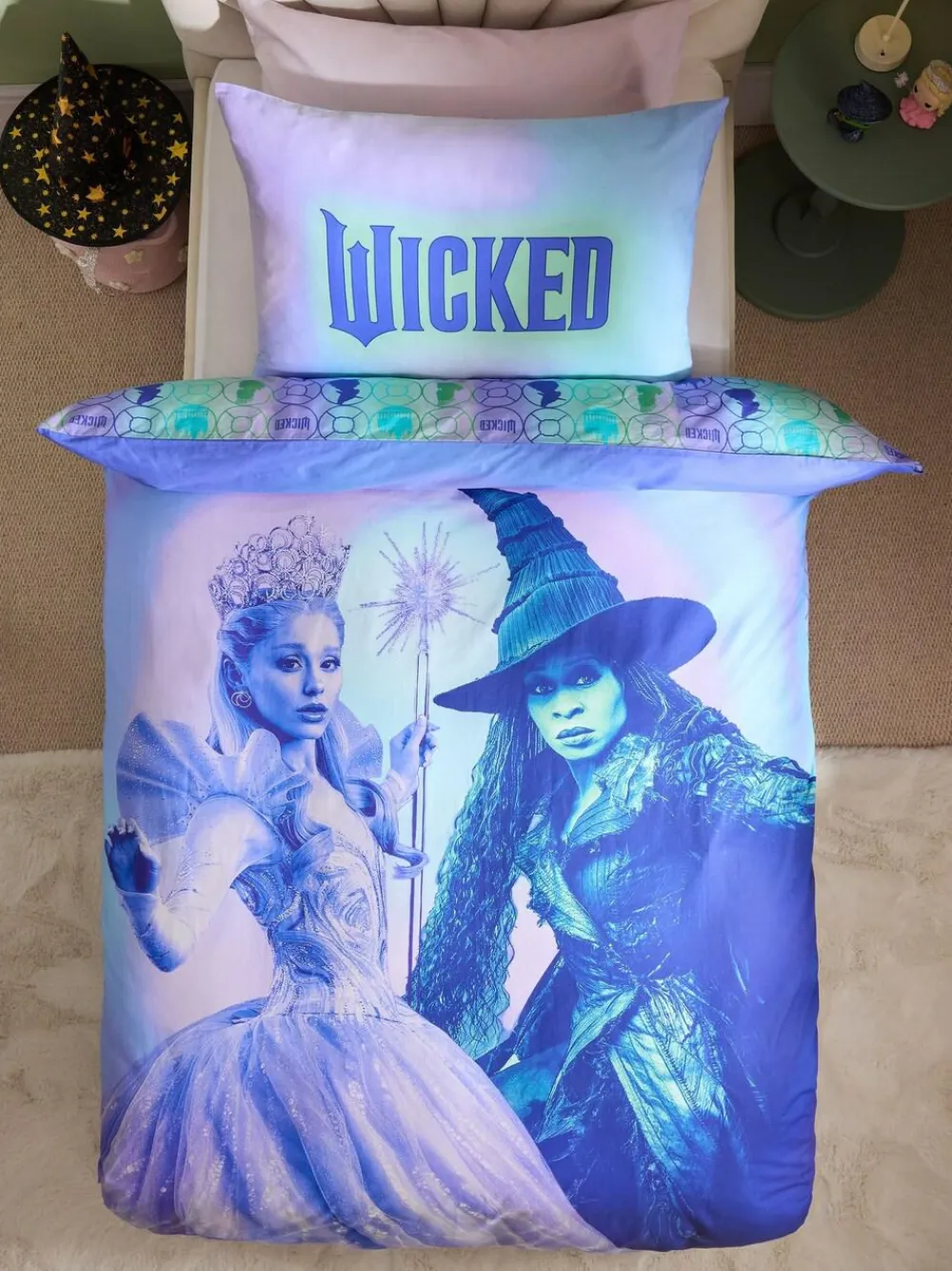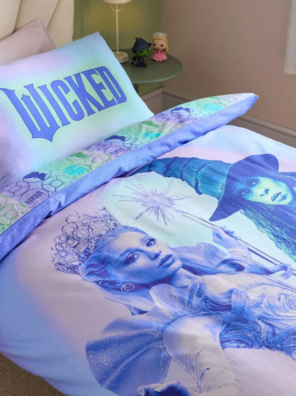 Transform their room with this exciting Wicked duvet cover and pillowcase set, perfect for bringing theatrical style to their bedtime. This set features a cool design and striking character imagery, ensuring they can sleep in style with this fun license bedding designed exclusively for Next. Duvet Cover and Pillowcase Set Ombre Wicked design Fun license bedding Designed exclusively for Next Machine washable. Duvet Cover and Pillowcase:100% Cotton Single: Width 135cm x Length 200cm, with 1x standard pillowcase.