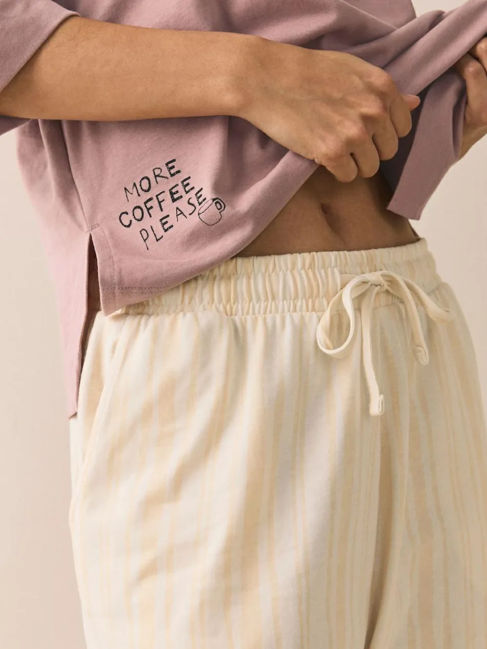 An effortless choice for a cosy night in, this women’s pyjama set combines comfort with a fun, modern design. The soft fabric base and long bottoms are complemented by graphic print detailing, making this set both a comfortable and stylish option. Two-piece pyjama set Soft fabric base Graphic print Elasticated waistband with drawcord Machine washable. Pyjama Top Top 100% Cotton. Neck 95% Cotton, 5% Elastane. Pyjama Bottom 100% Cotton. Warning: Keep away from fire and flames., Our tall collection is designed to fit women 5’10” and above. This has been proportionally increased through the body, leg and sleeve to achieve the perfect fit. Available in sizes 8-20.