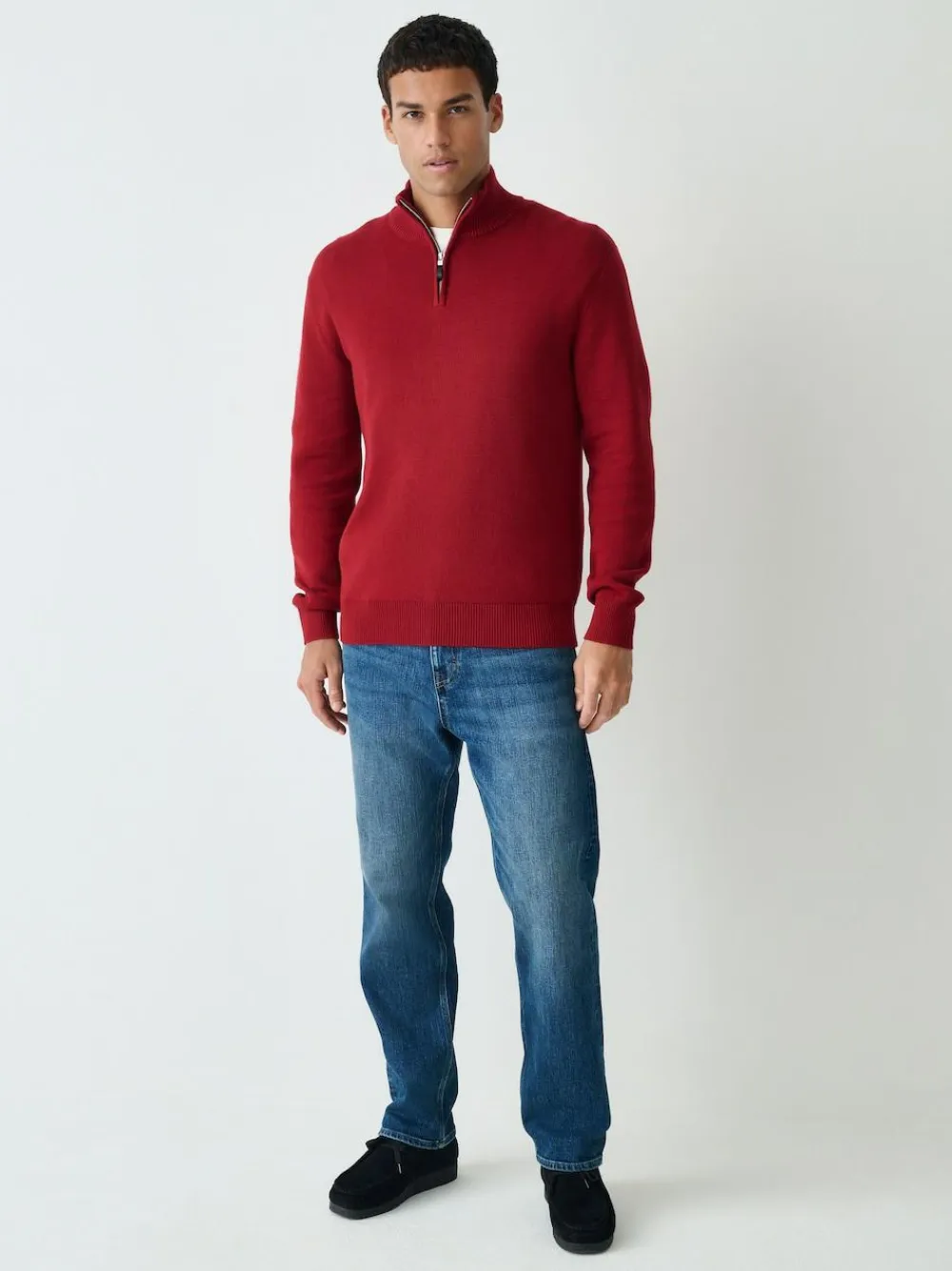 Next Red Plain N.Premium Regular Fit 100% Cotton Premium Quarter Zip Jumper^ Knitwear|Knitwear