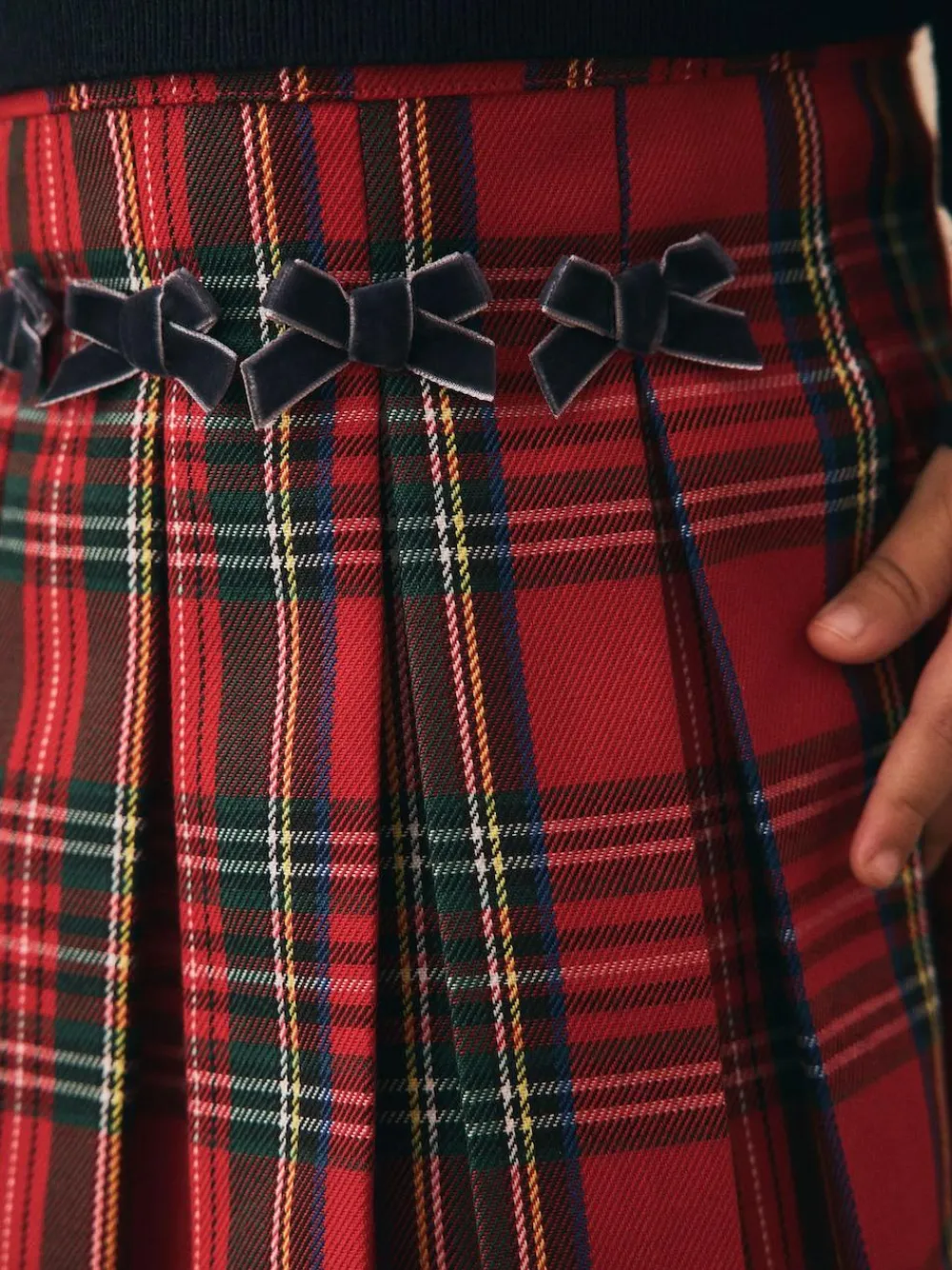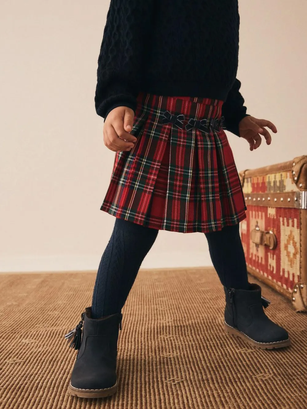 Next Red Tartan Bow Skirt with Navy Tights (3mths-7yrs)^ Shorts & Skirts