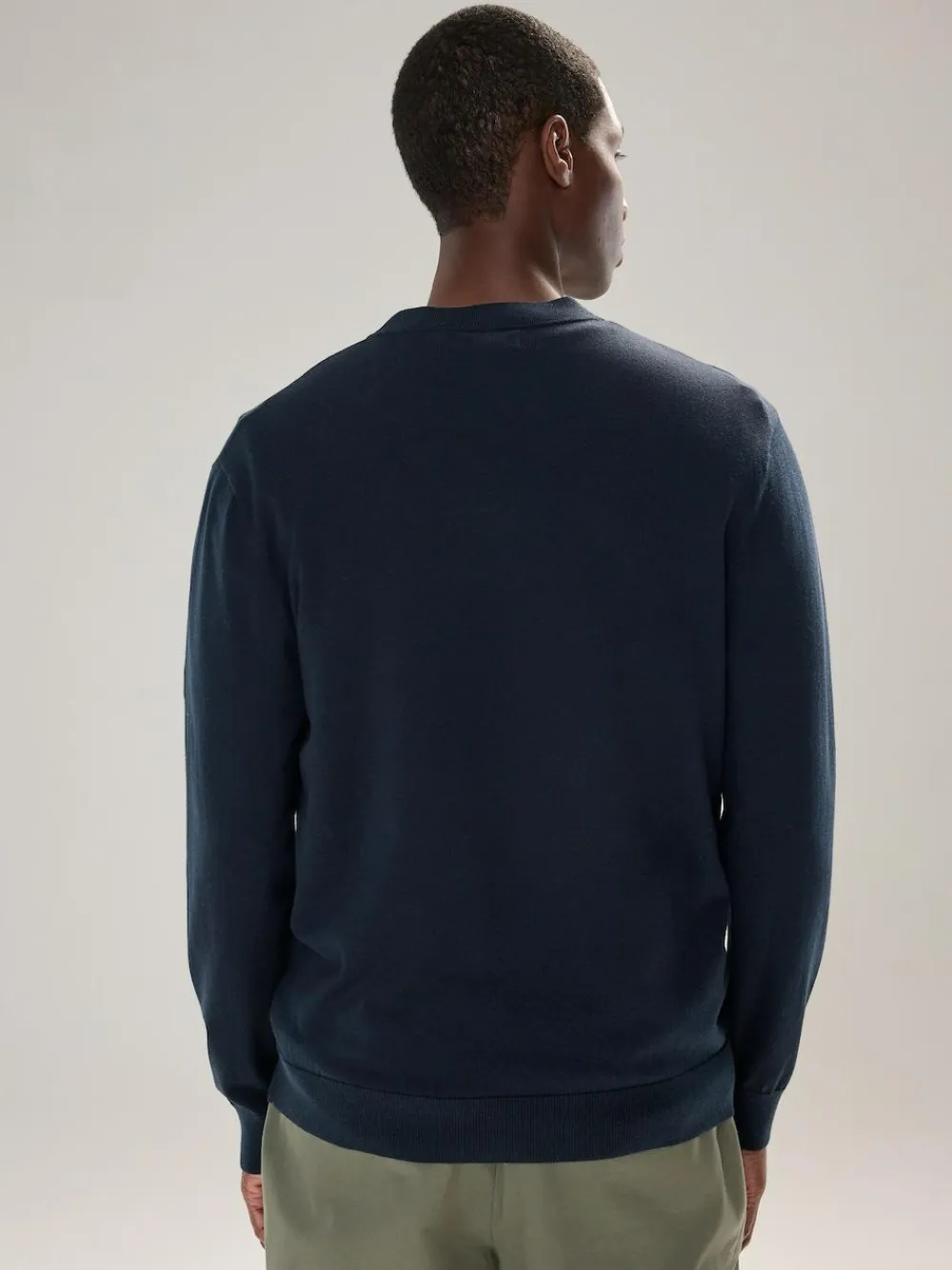 Refine your layering with this classic navy-blue cardigan. Crafted from a soft cotton blend, its versatile regular fit and V-neck design make it an essential for year-round wear. A true wardrobe staple for a polished yet comfortable look. V-neck Button-up fastening Ribbed cuffs and hem Soft-touch feel Machine washable. 51% Cotton, 34% LENZING™ ECOVERO™ Viscose, 15% Nylon.