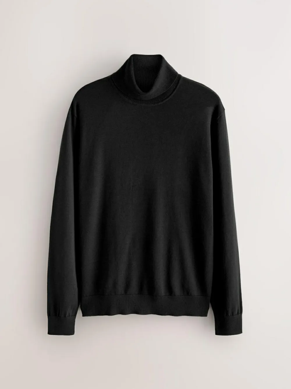 Next Regular Fit Cotton Rich Roll Neck Jumper Black
