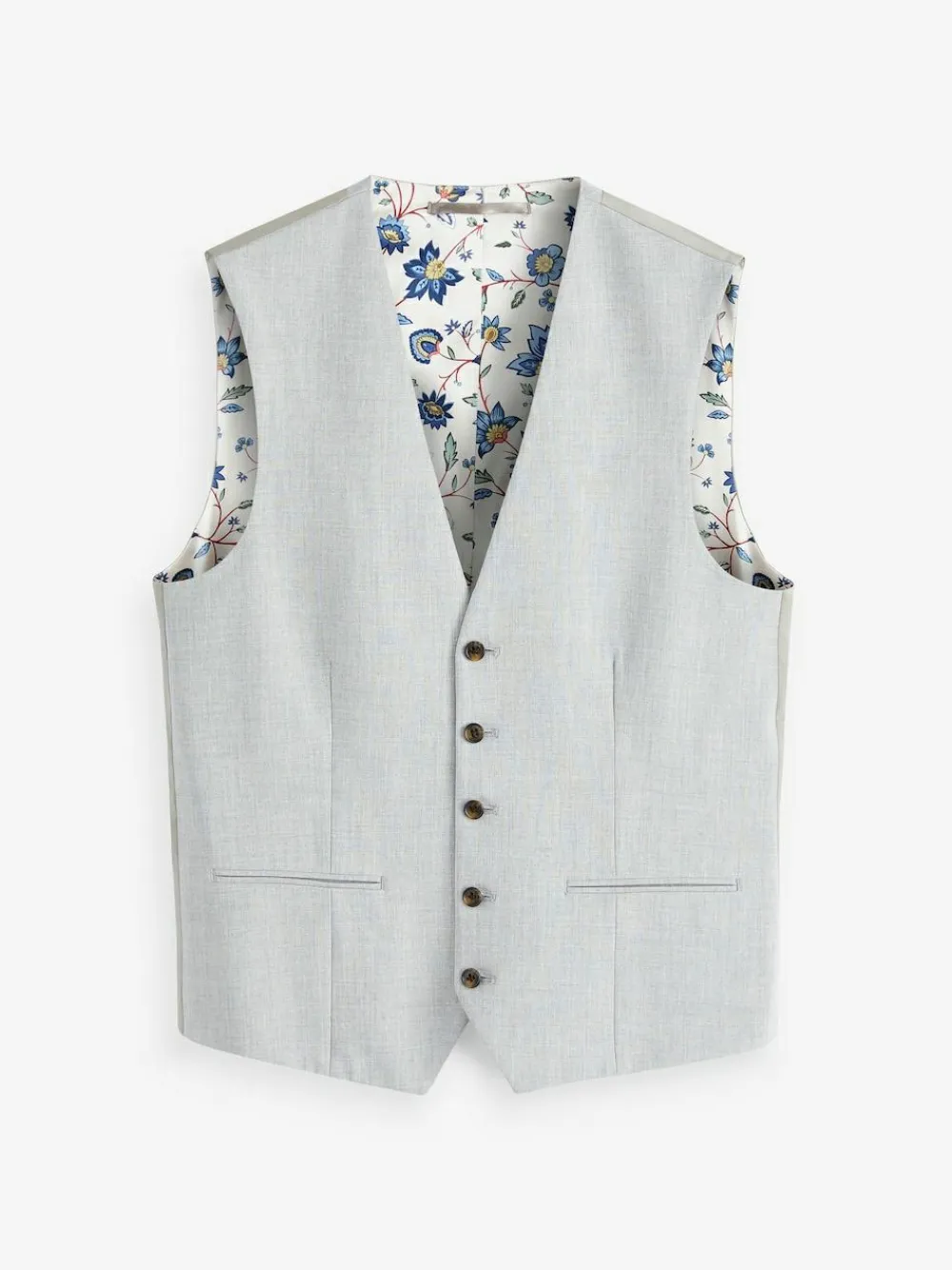 Dress to impress with our men’s motionflex waistcoat. Available in a range of colours, this smart Light grey waistcoat is cut in a single-breasted silhouette and features button fastening, welt pockets and a V-neckline. Complete with stretch fabric and an adjustable back belt for a comfortable fit, this waistcoat makes a charming addition to your formalwear. Single-breasted waistcoat Motionflex stretch fabric Printed back V-neck Five-button front fastening Adjustable back belt Welt pockets Dry clean only. Main 55% Recycled polyester, 34% Viscose, 7% Polyester, 4% Elastane. Inner Lining 60% Recycled polyester, 35% Polyester, 5% Elastane. Outer Lining 100% Polyester.
