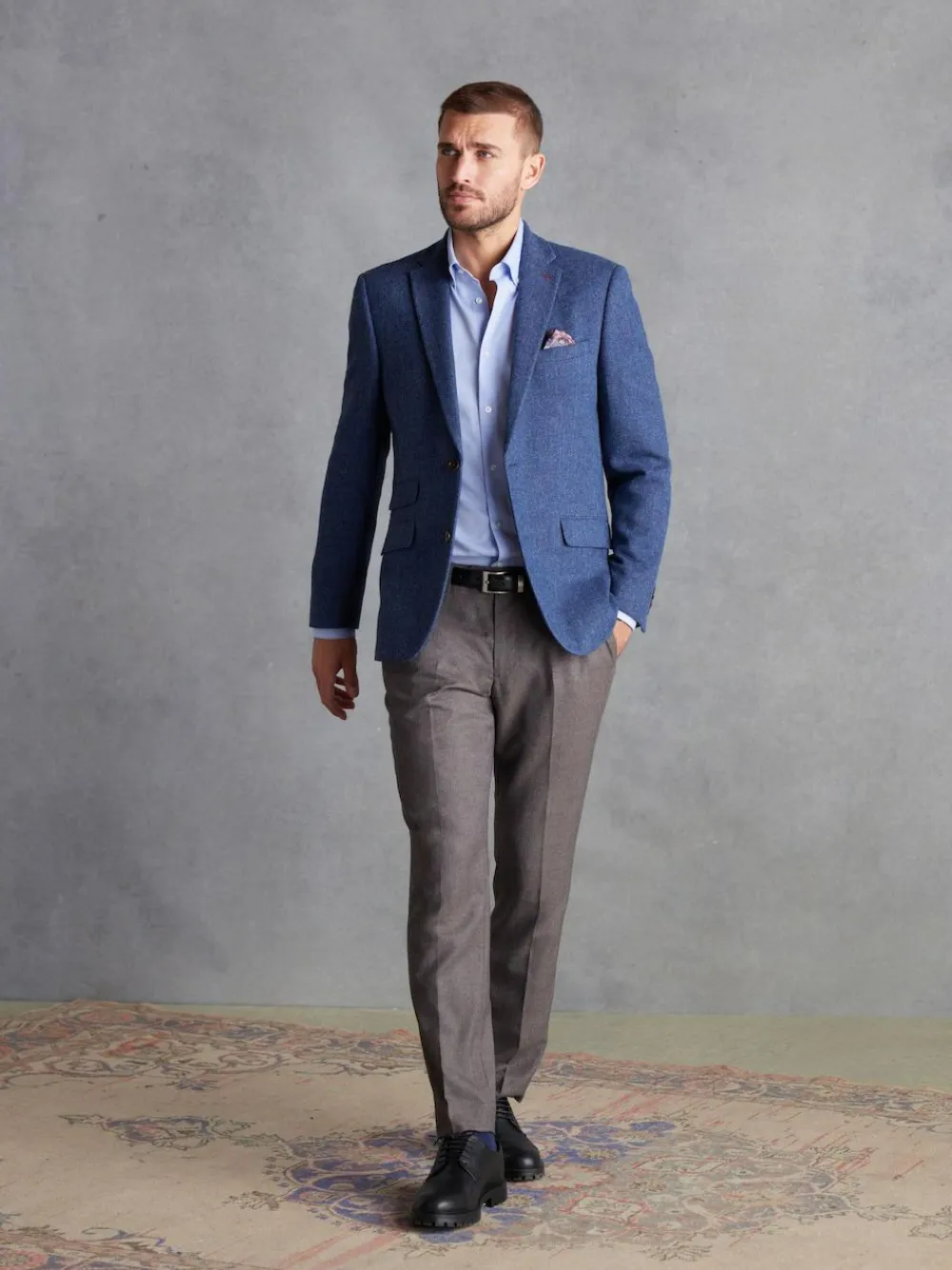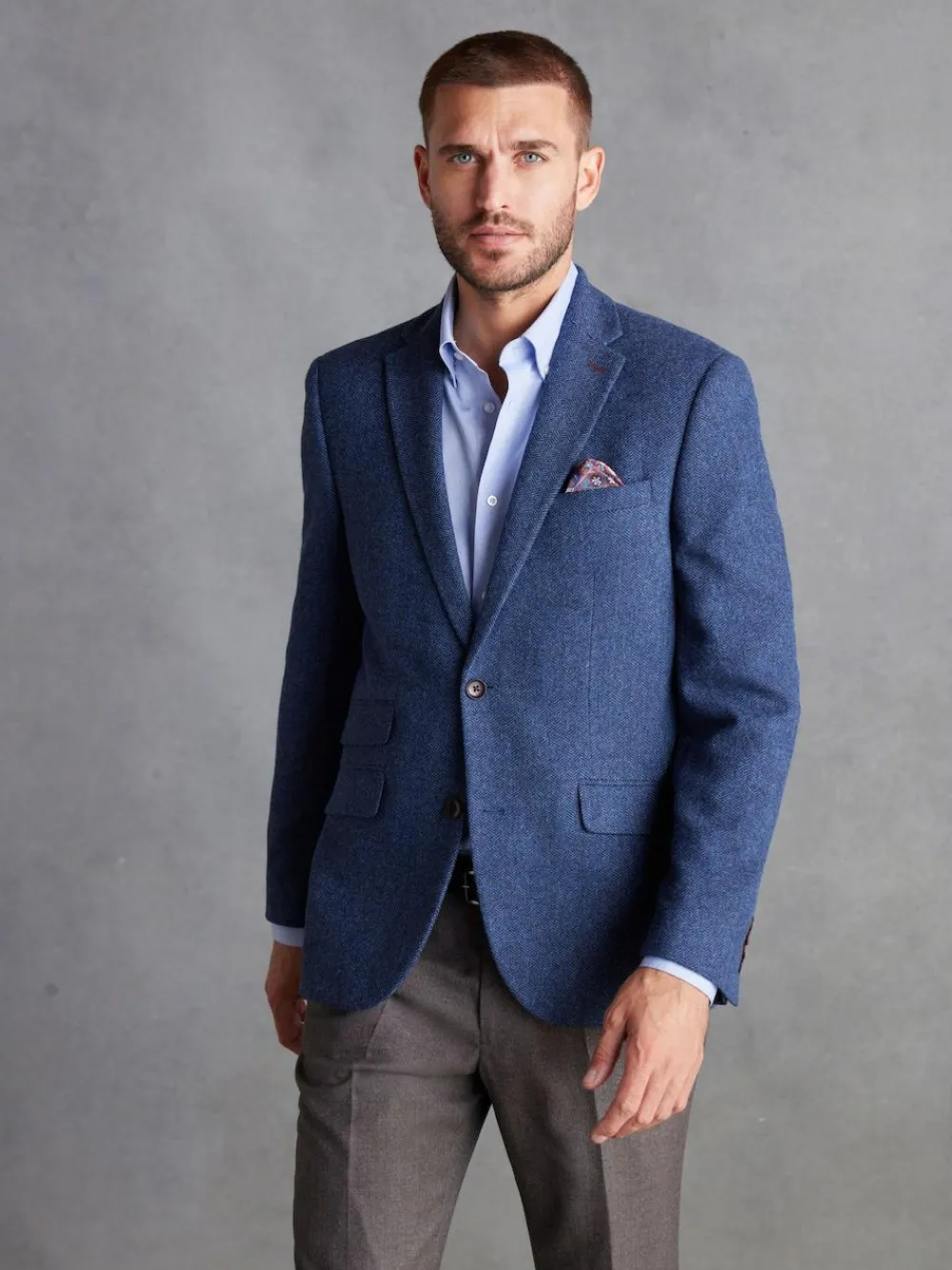 Next Regular Fit Signature Wool Blend Herringbone Nova Fides Blazer Blue