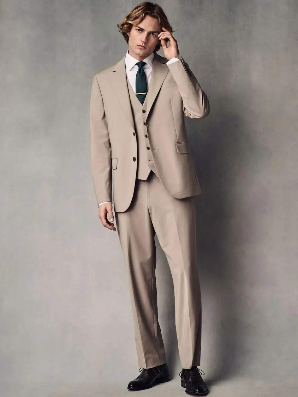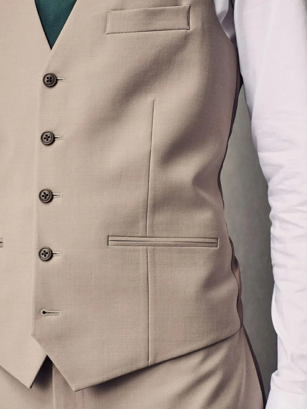 In a soft wool blend, this stone motionflex waistcoat will spruce up your formal looks. Cut in a regular fit with four way stretch, it makes a comfy yet classic addition to your wardrobe. Complete with button-down fastening, back buckle adjuster and pockets. Soft wool blend Regular fit Button-down fastening Back buckle adjuster Pockets Main 52% Wool, 43% Recycled polyester, 5% Elastane. Inner Lining 100% Recycled polyester. Outer Lining 100% Recycled polyester.