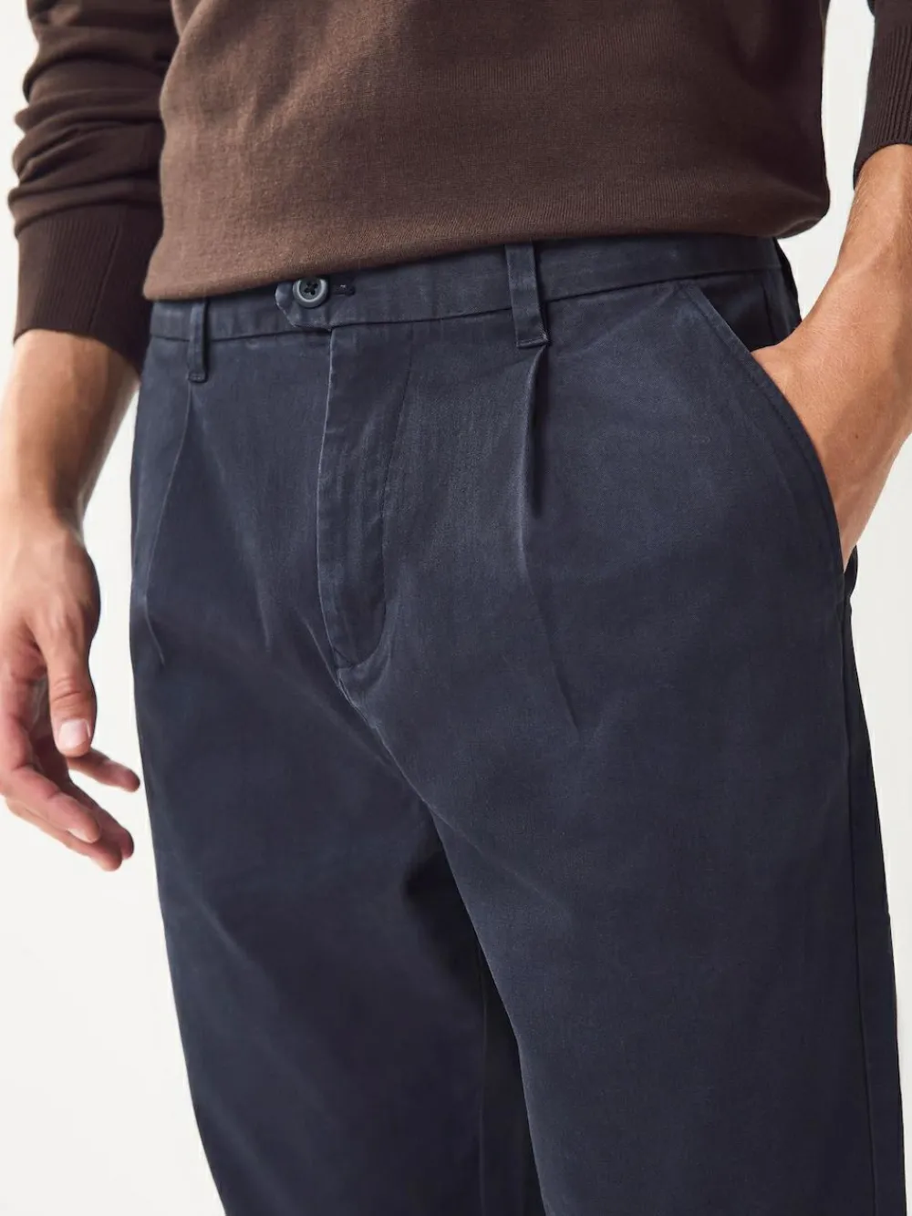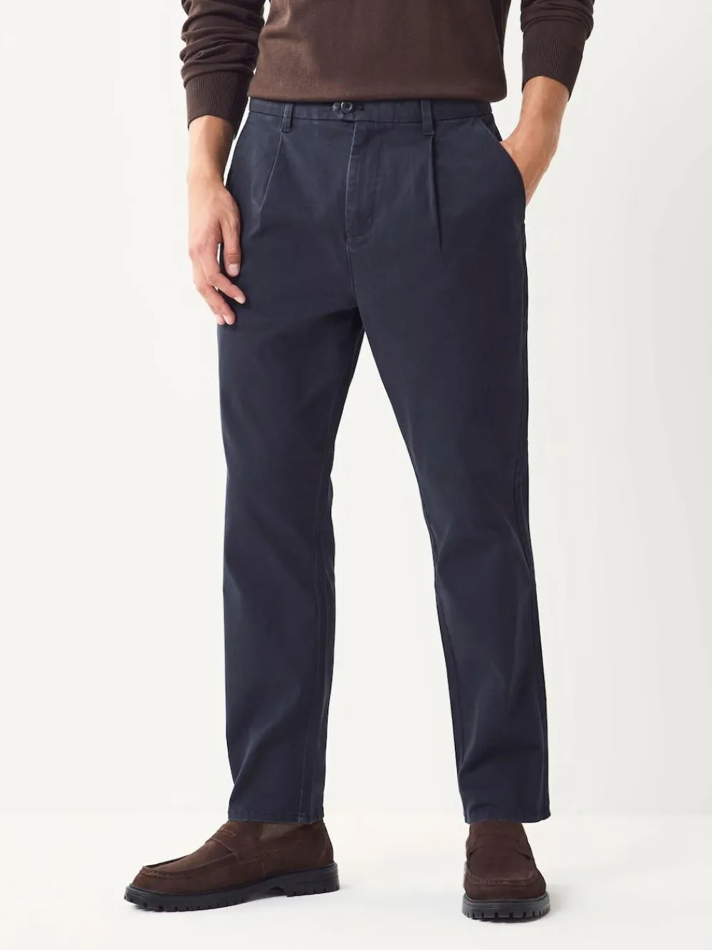 Next Regular Tapered Fit Single Pleated Stretch Chinos Trousers^ Pants & Chinos