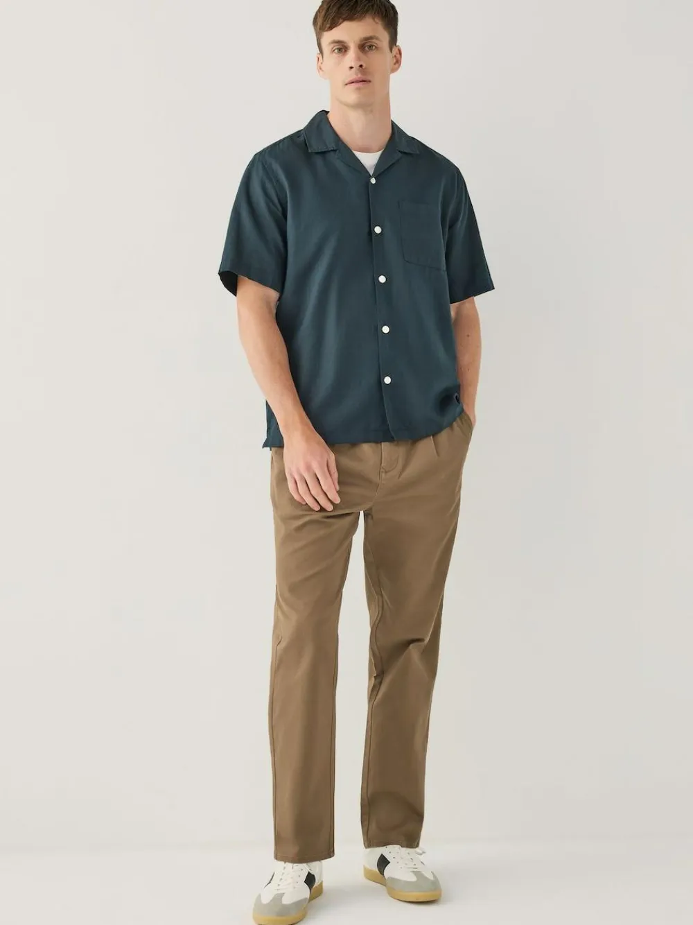 Next Regular Tapered Fit Single Pleated Stretch Chinos Trousers^ Pants & Chinos