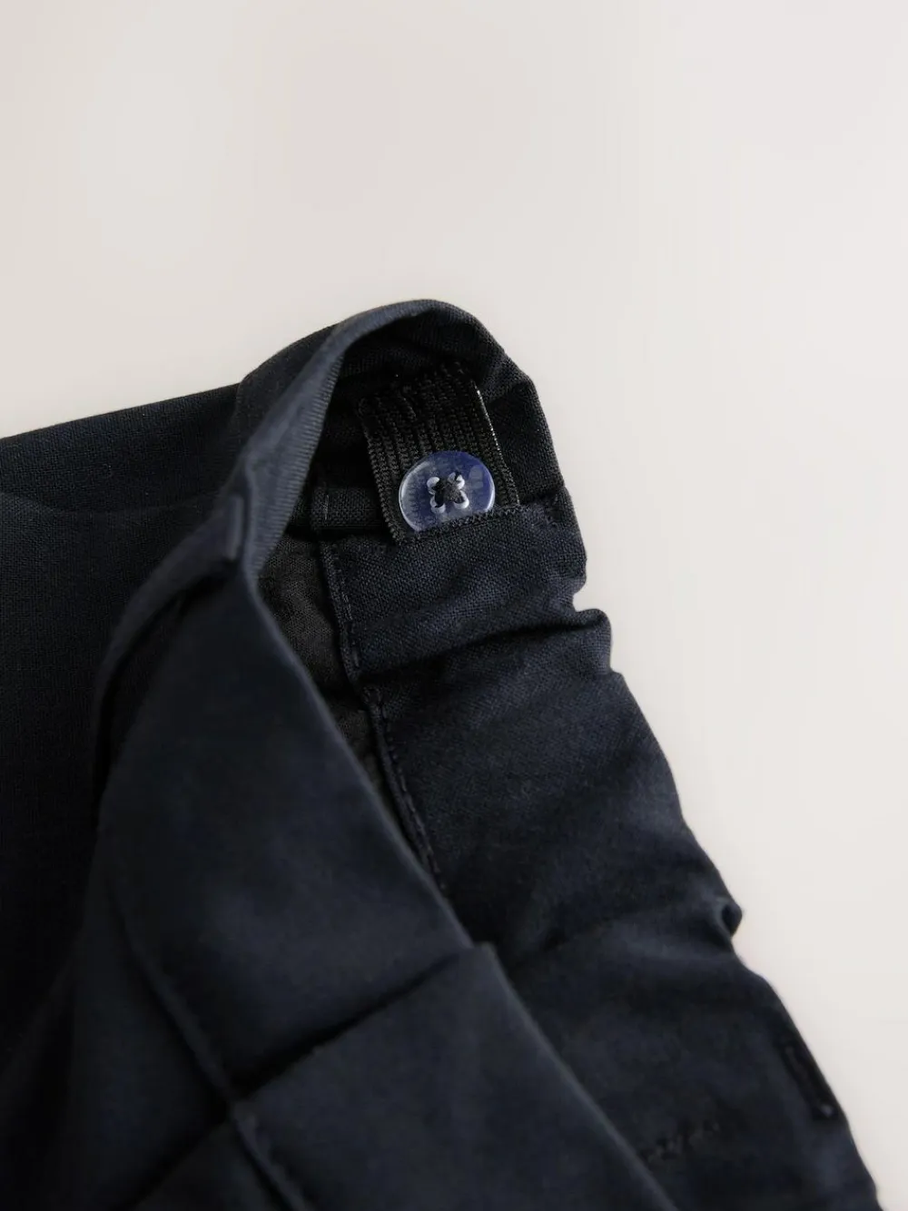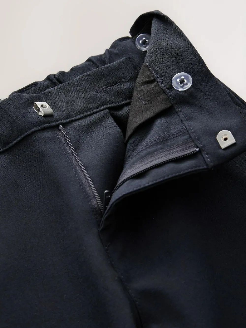 Go back to school in style with our regular waist Formal Stretch Skinny Trousers in navy blue. The adjustable waist and skinny leg silhouette make these flat front trousers a modern, yet stylish addition to his school uniform. Made with an easy iron fabric, this pair of trousers also features Teflon technology to help repel water based stains, available in a hook and bar fastening.Key features: Easy Iron Fabric – Handy easy-iron finish Teflon® Technology – a treatment that repels water and water-based stains for easy cleaning and quick drying Hook and bar fastening Machine washable Adjustable regular waist Flat front Skinny leg style 63% Recycled polyester, 34% LENZING™ ECOVERO™ Viscose, 3% Elastane. This product is made with teflon. Teflon® is a registered trademark of DuPont.