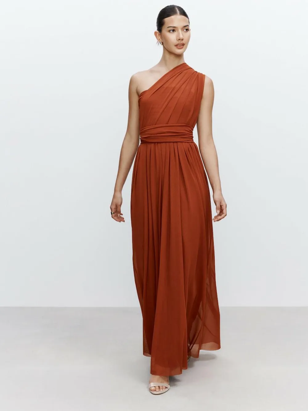 Next Rust Brown Mesh Multiway Wedding Guest Bridesmaid Maxi Dress^Women Occasion Dresses|Maxi Dresses