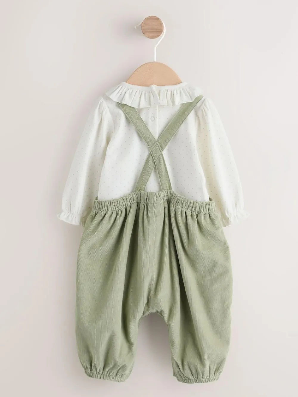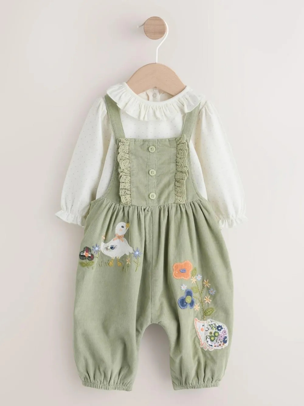Next Sage Green Embroidered Long Sleeve Bodysuit and Cord Dungaree 2 Piece Baby Set (0mths-3yrs)^ Baby Girls|Baby Girls
