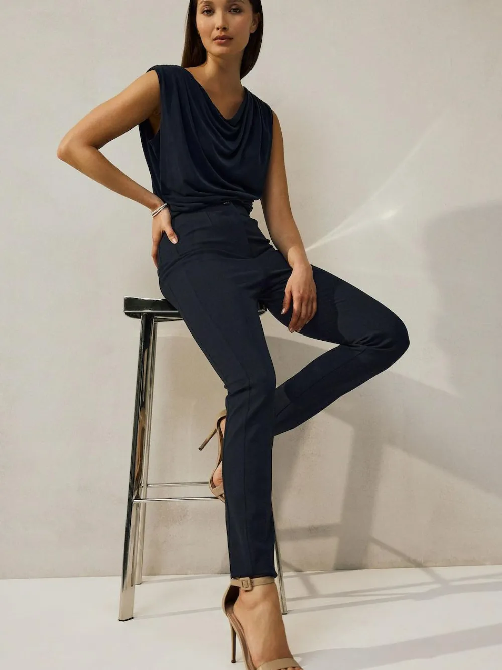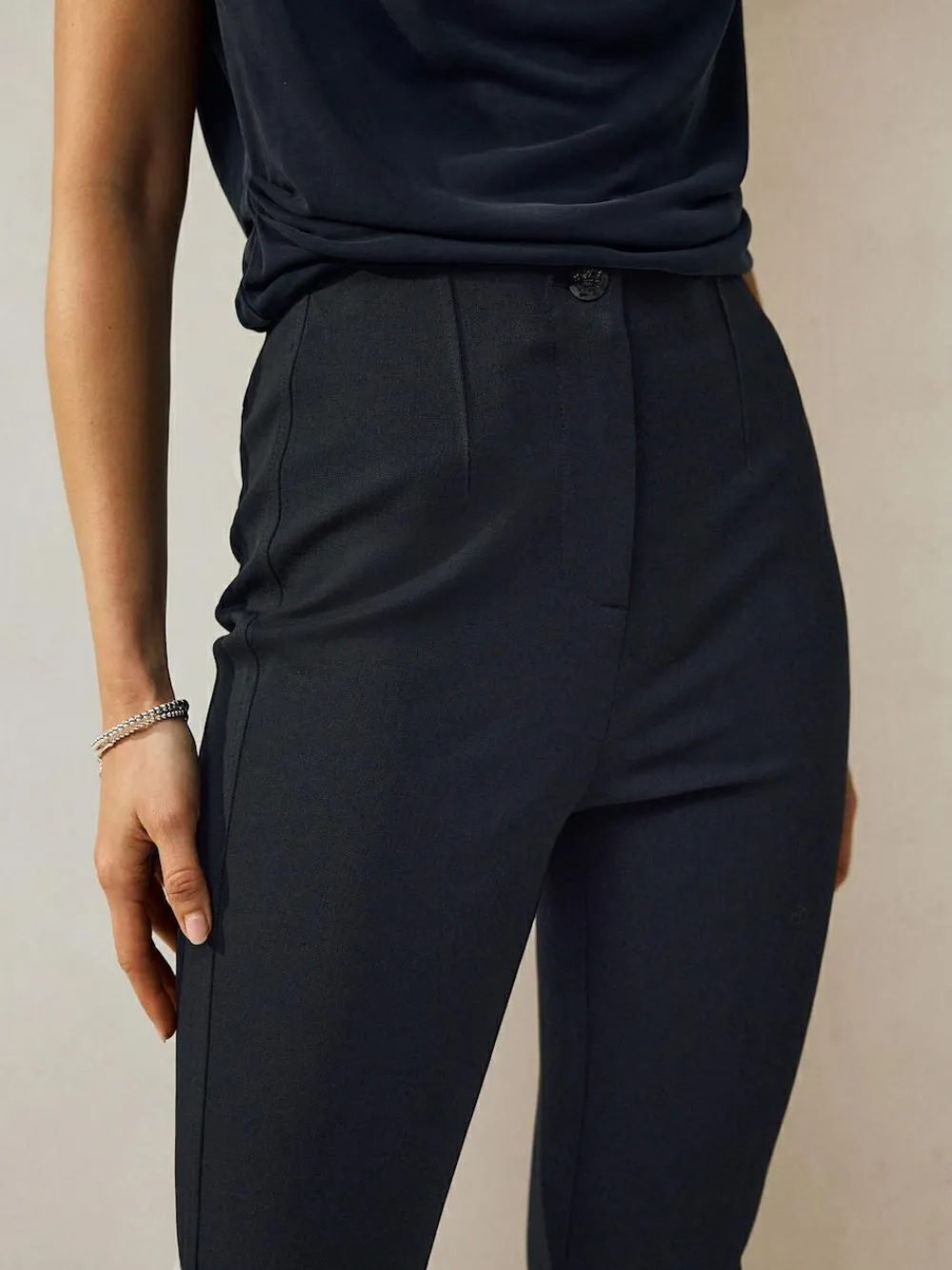 These sleek military-inspired trousers are designed with a skinny leg and strategic sculpting seams for a flattering fit. Their statement button adds a touch of sophisticated edge to your everyday style. Sculpting seams Skinny leg Military button detail Elasticated waistband Short to fit inside leg 27″ / 69cm. Regular to fit inside leg 29″ / 74cm. Long to fit inside leg 31″ / 79cm. XL Tall to fit inside leg 33″ / 84cm. XXL Tall to fit inside leg 35″ / 89cm. Machine washable. 59% Recycled polyester, 33% Livaeco™ Viscose, 5% Elastane, 3% Polyester. Items with the curve logo are available in sizes 18 and above., Our tall collection is designed to fit women 5’10” and above. This has been proportionally increased through the body, leg and sleeve to achieve the perfect fit. Available in sizes 8-20.